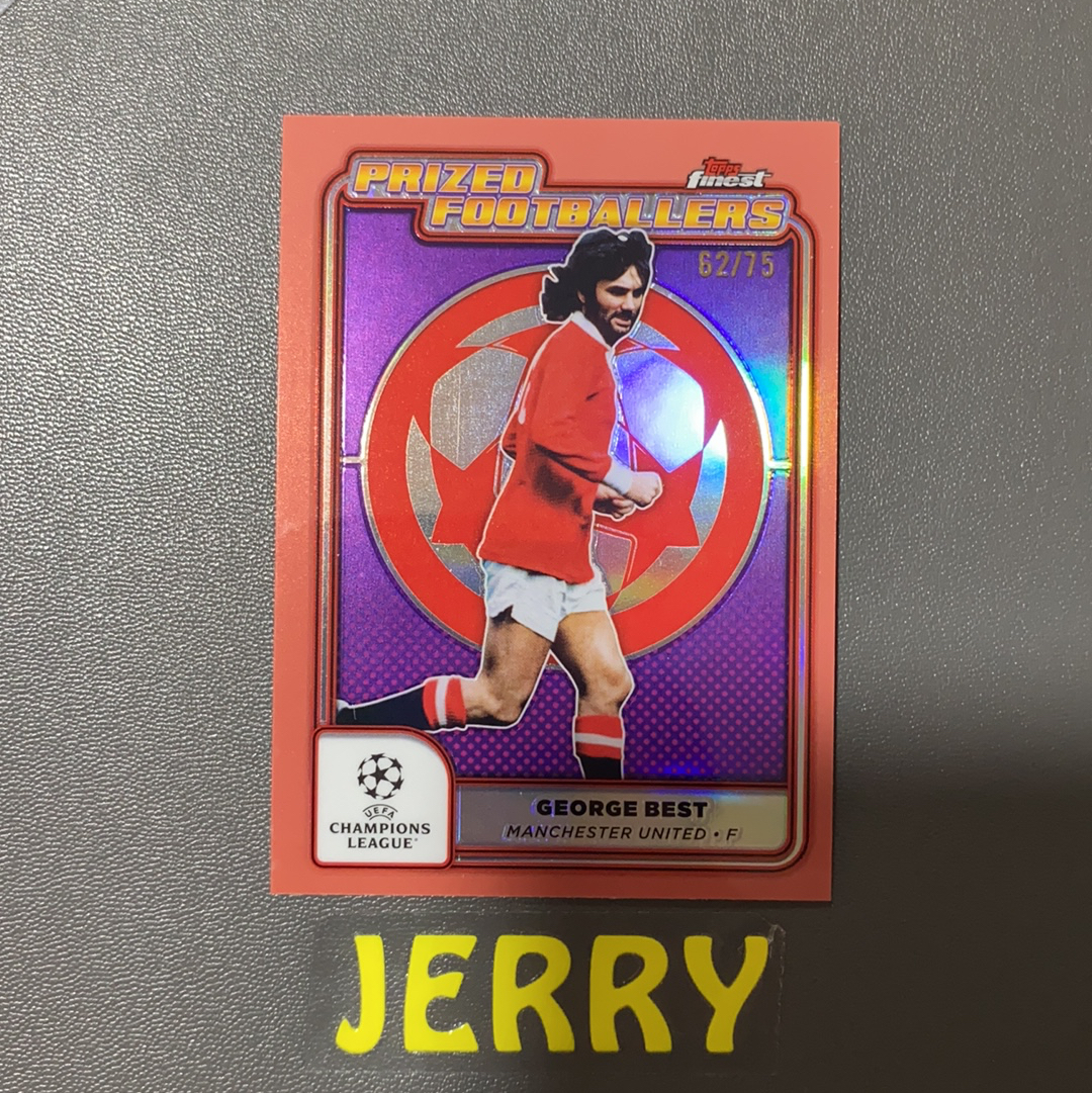 2024-25 Topps Finest George Best 欧冠 ft 曼联 乔治 贝斯特 62/75编 典范球员 玫瑰金折 卡品如图【陈先生】
