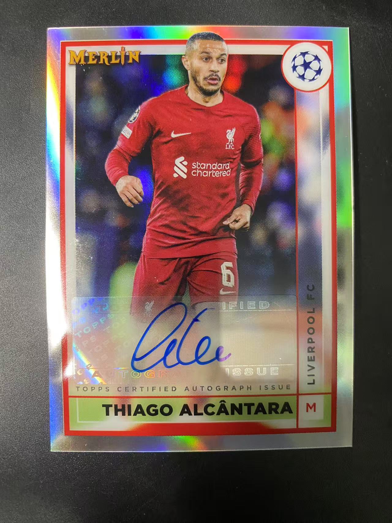 2023 Topps Merlin chrome Thiago Alcantara 梅林 欧冠红军 蒂亚戈·阿尔坎塔拉(Thiago Alcantara) 西班牙 利物浦 签字 银折签 卡品如图 微瑕