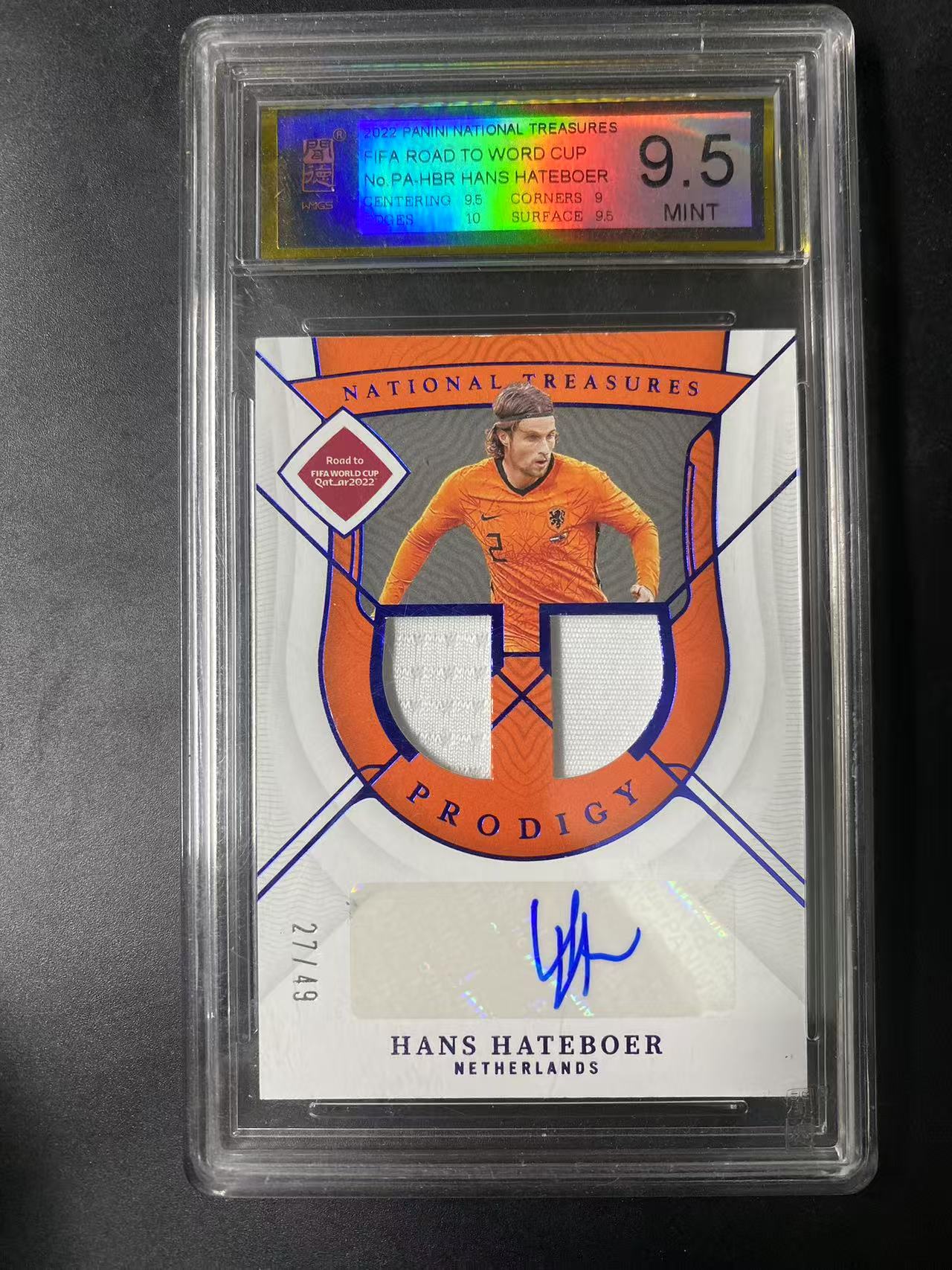 2022 Panini National Treasures Hans Hateboer 哈特波尔 国宝 物料签字 49编 比赛亲穿 暴力切割 双窗 荷兰国脚 范戴克 加克波 闻德评级9.5分