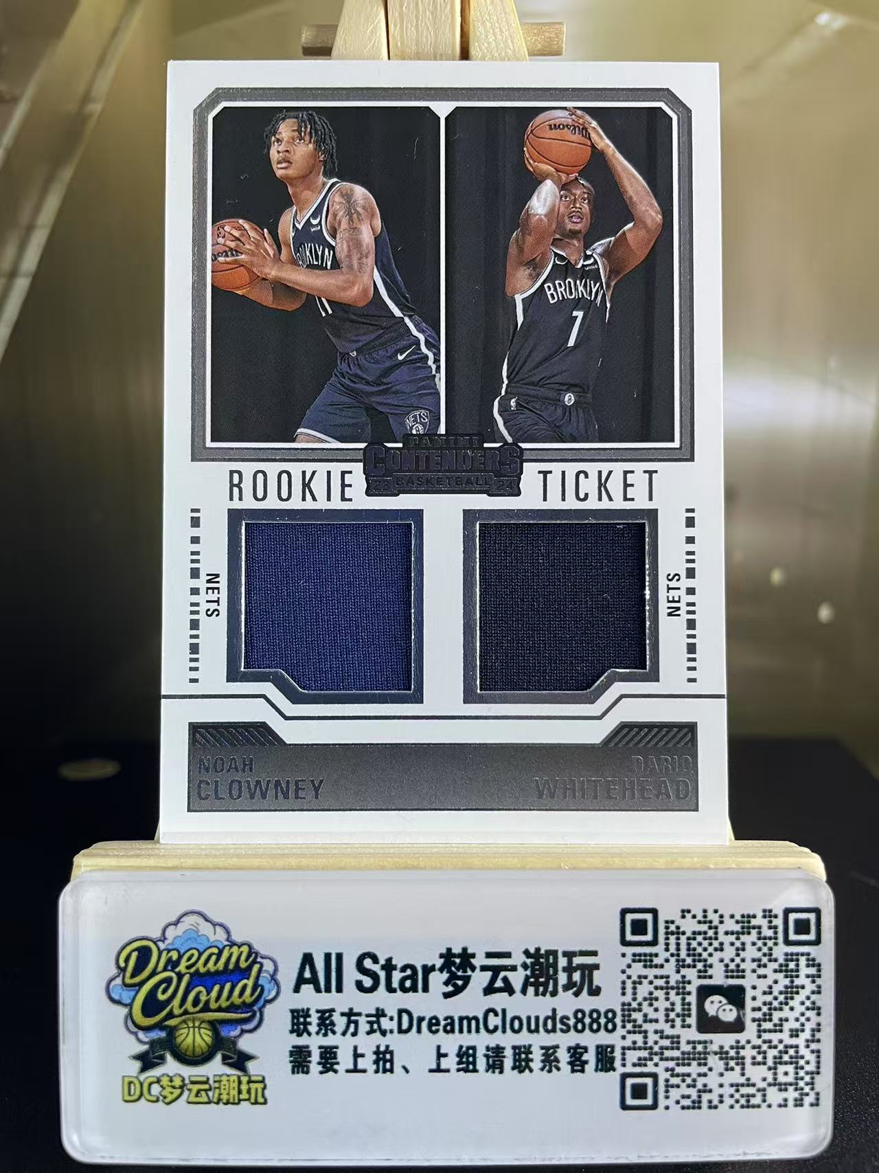 2023-24 Panini Contenders Dariq Whitehead RC 【DC梦云】球票系列 布鲁克林篮网 新秀 诺阿 克洛尼、达里克 怀特黑德 双人物料 球衣切割物料 凑套必备 宝