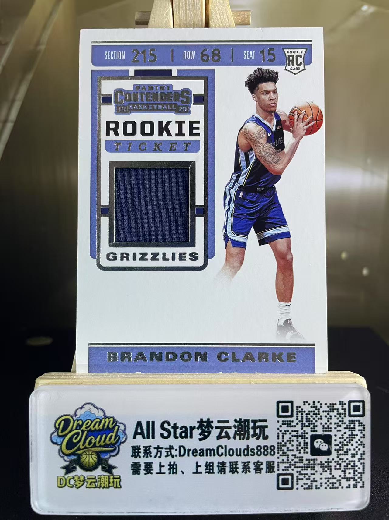 2019-20 Panini Contenders Brandon Clarke RC 【DC梦云潮玩】球票系列 孟菲斯灰熊 新秀 布兰登 克拉克 GU落场 亲穿球衣 切割物料 凑套必备 卡品如图 宝