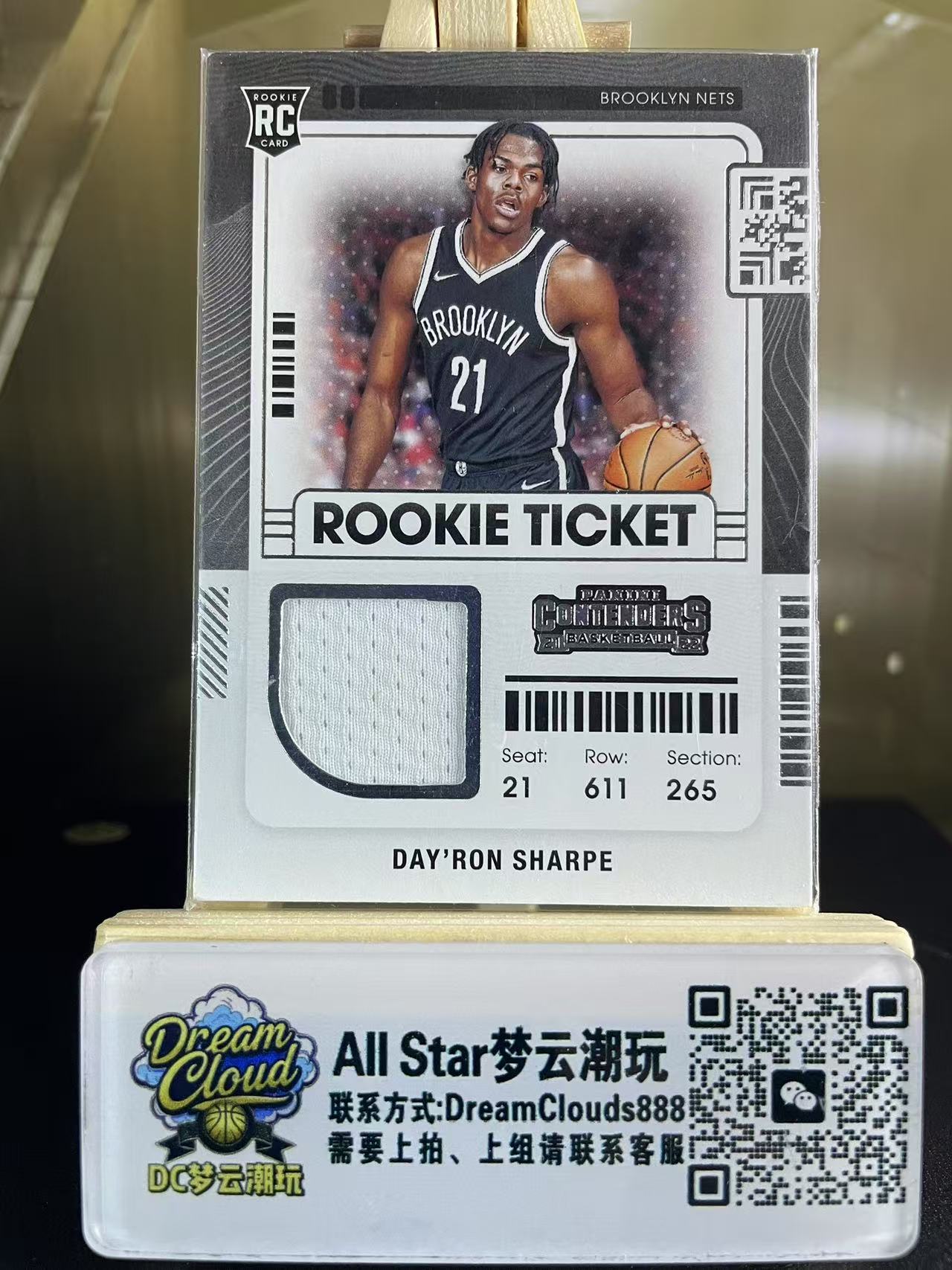 2021-22 Panini Contenders DayRon Sharpe RC 【DC梦云】球票系列 布鲁克林篮网 新秀 戴龙 夏普 Ticket 小窗素球衣 切割物料 凑套必备 卡品如图 宝