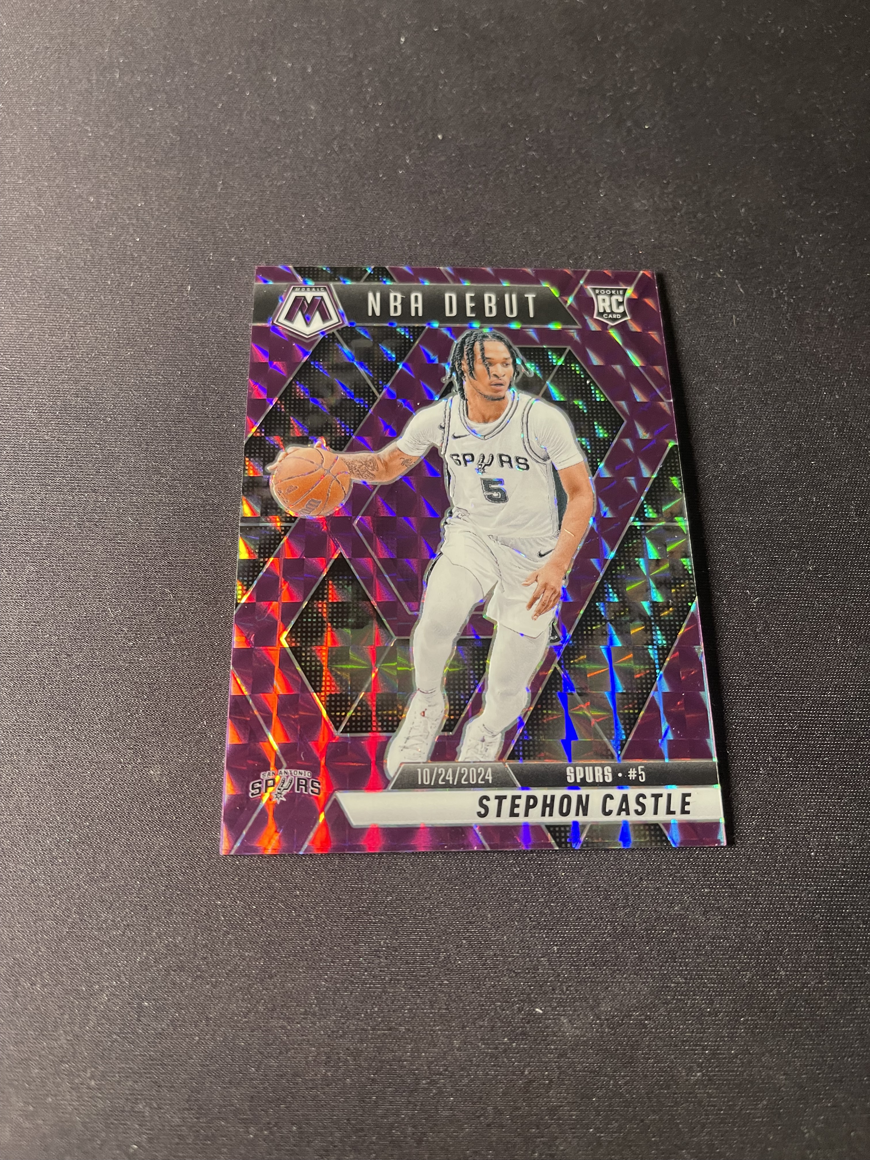 2024-25 Panini Mosaic Stephon Castle RC 马赛克 马刺 斯蒂芬卡斯尔 新秀 折射 紫折 46/99 NBA Debut 瑕疵如图 不累计「老夫子」122
