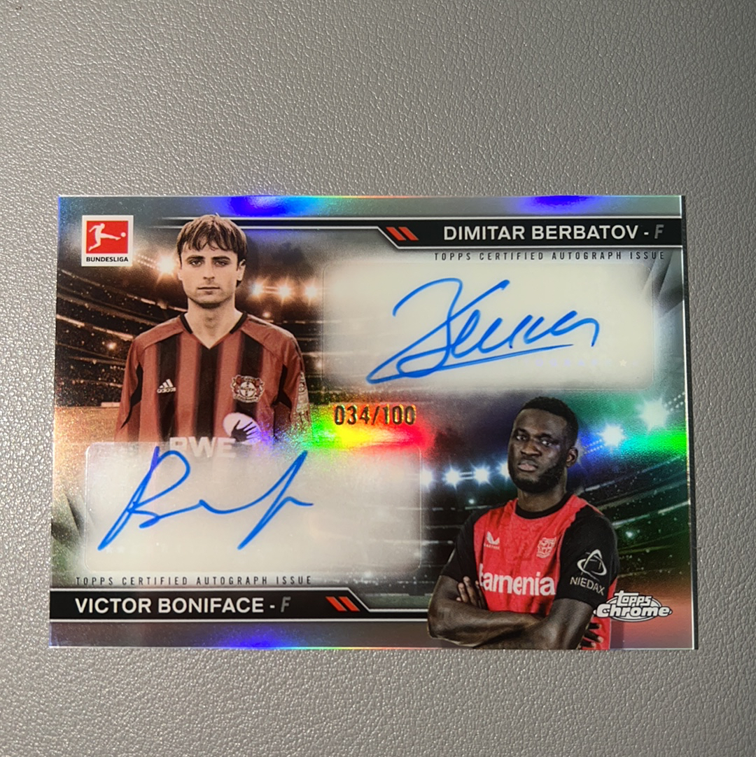 2024-25 Topps Chrome 德甲 勒沃库森 Dimitar Berbatov 迪米塔 贝尔巴托夫 Boniface 维克托 博尼费斯 银折 折射 历史双星 双人 双签 签字 100编