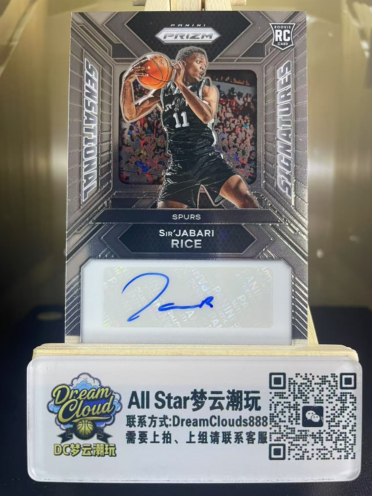 2023-24 Panini Prizm sir'jabari rice RC 【DC梦云潮玩】PZ系列 马刺 新秀 瑟贾巴里 莱斯 签字签名 SS签 新秀签 Sensational 卡品如图 男