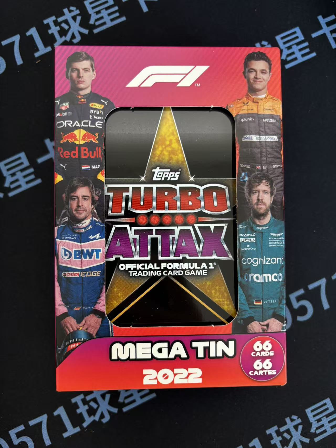 2022 Topps Turbo Attax 铁盒 F1 F1 原封 黑盒 每盒4张限量卡+2张独占 周冠宇新秀年 博维斯塔潘汉密尔顿塔斯勒克莱尔等 博数字版签字 印签 大比例 每盒66张卡
