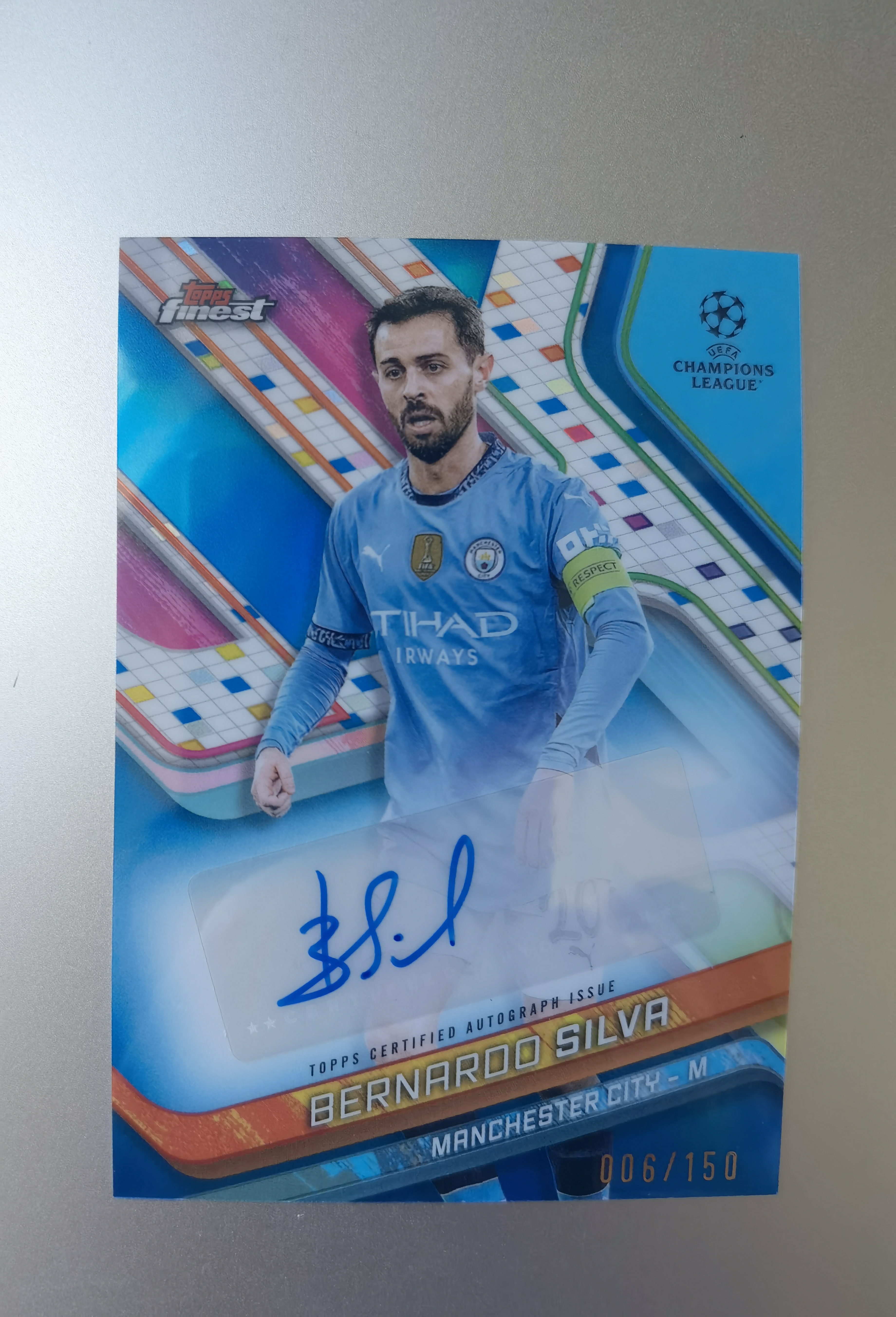 2025 Topps Finest Bernardo Silva 欧冠 曼城 B席 贝尔纳多 席尔瓦 150编 签字 蓝折 限量 折射 英超