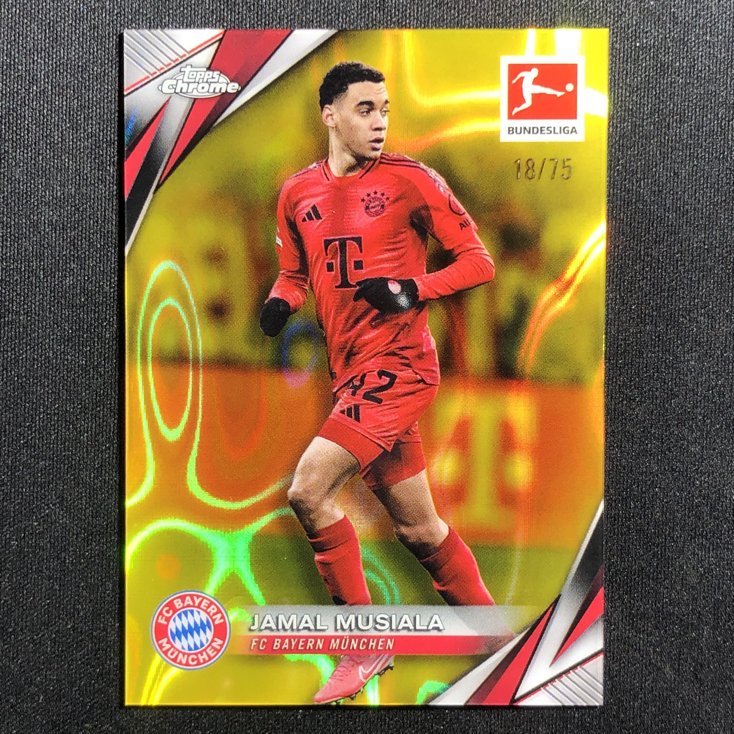 2025 Topps chrome bundesliga Jamal Musiala 【piaji】德甲 穆夏拉 穆西亚拉 拜仁 /75编 黄熔岩 base 卡品如图 德国 小鹿 南大王 aurora