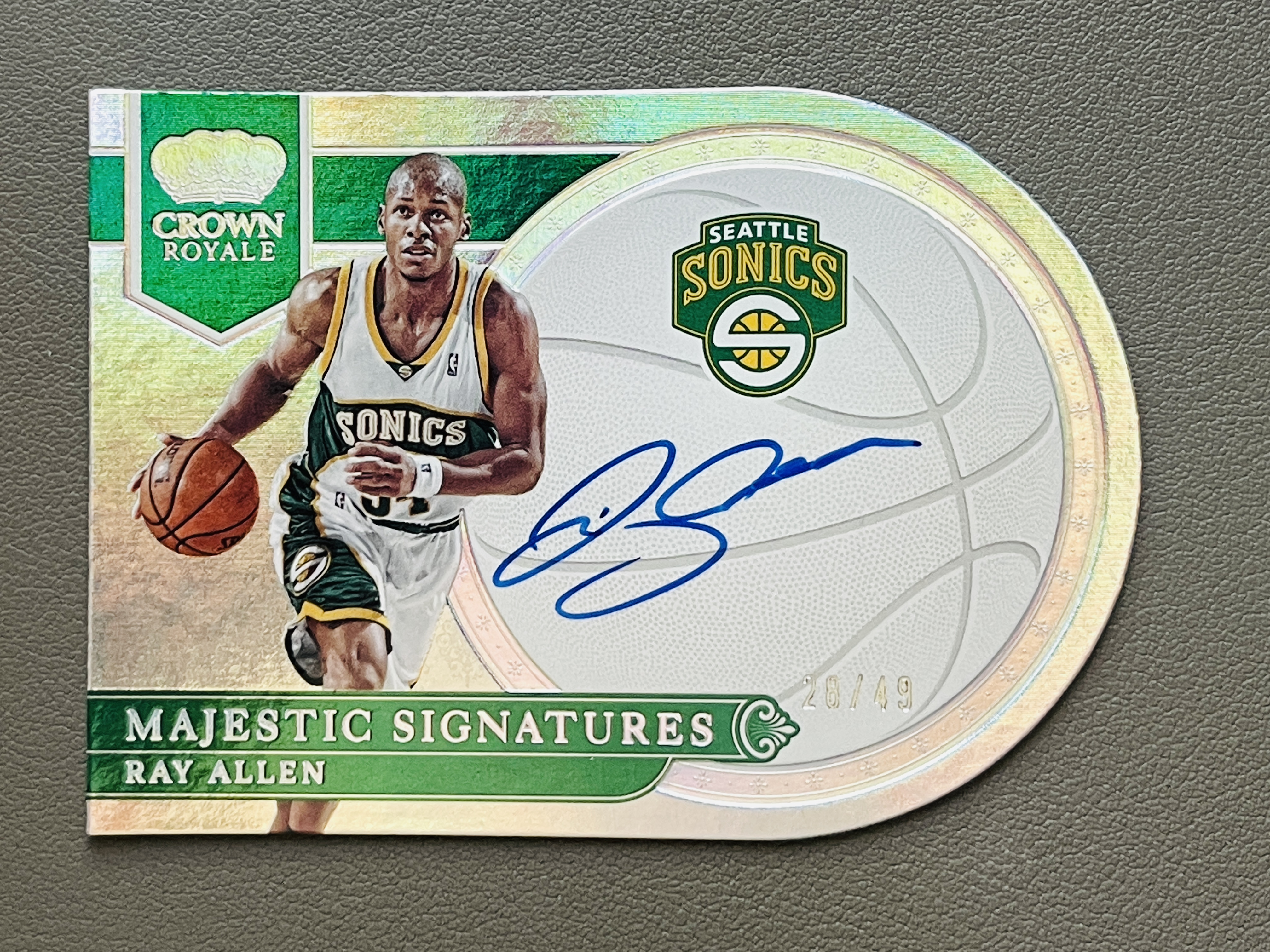 2022-23 Panini Crown Royale Ray Allen 【鲸鱼卡社】XIN 皇冠 超音速 雷阿伦 /49编 异形切割半球签字 卡签 详见描述