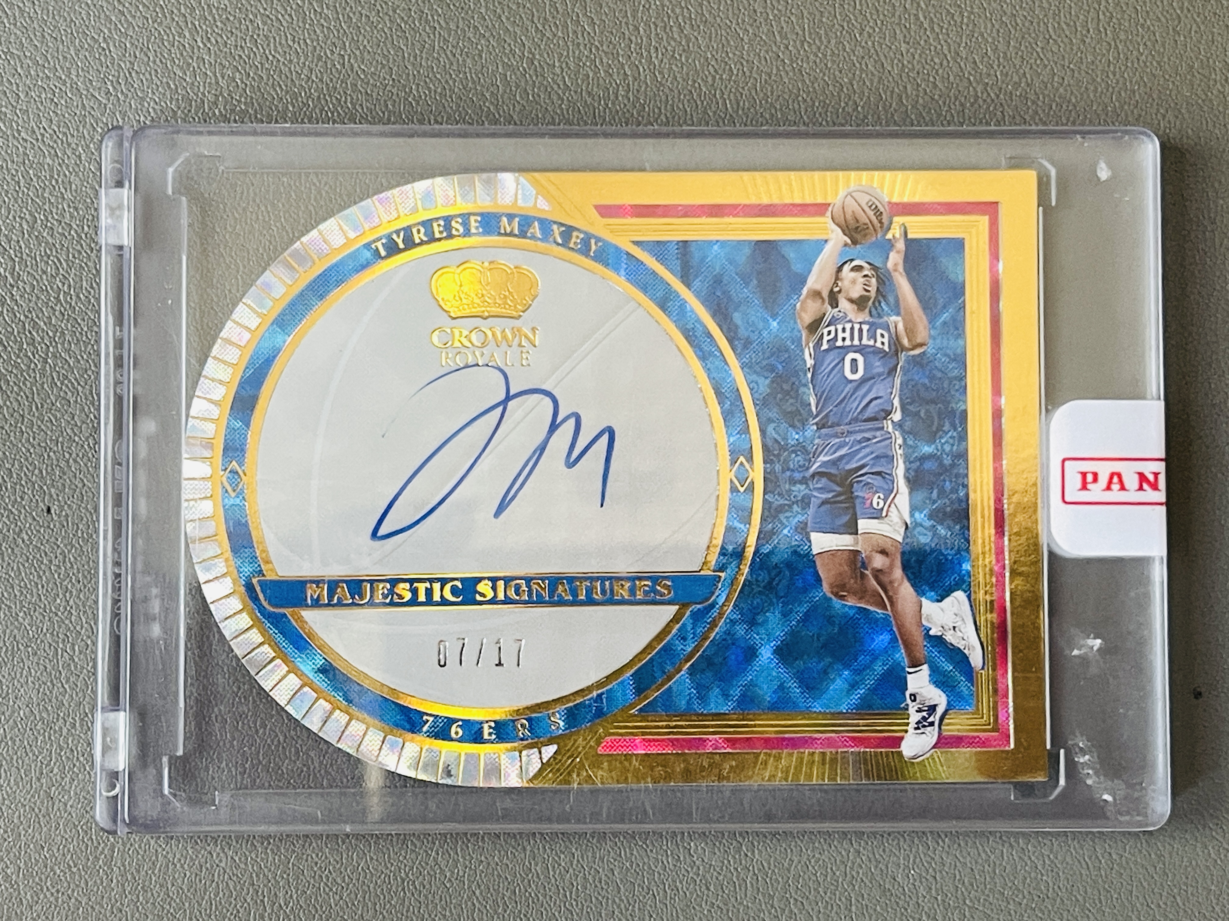 2023-24 Panini Crown Royale Tyrese Maxey 【鲸鱼卡社】XIN 皇冠 76人 马克西 /17编 异形切割半球签字 卡签 原封交换砖 详见描述