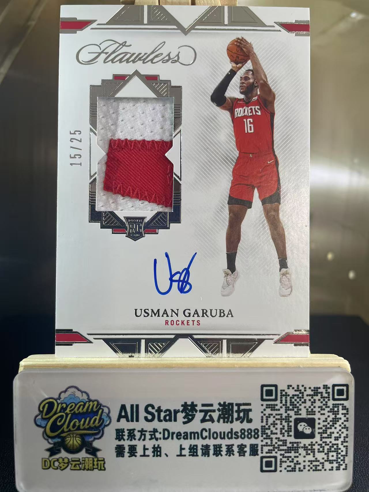 2021-22 Panini Flawless Usman Garuba 【DC梦云潮玩】手提系列 火箭 奥斯曼 加鲁巴 15/25编 SPM 签字卡签 GU落场物料 亲穿球衣 银平行 卡品如图 叫啥