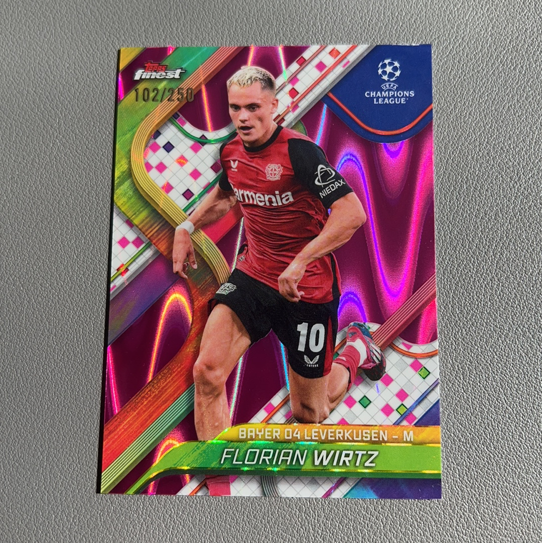 2024-25 Topps Finest Florian Wirtz 2025 欧冠 勒沃库森 利物浦 维尔茨 102/250编 粉变异虫折 粉熔岩折 卡品如图