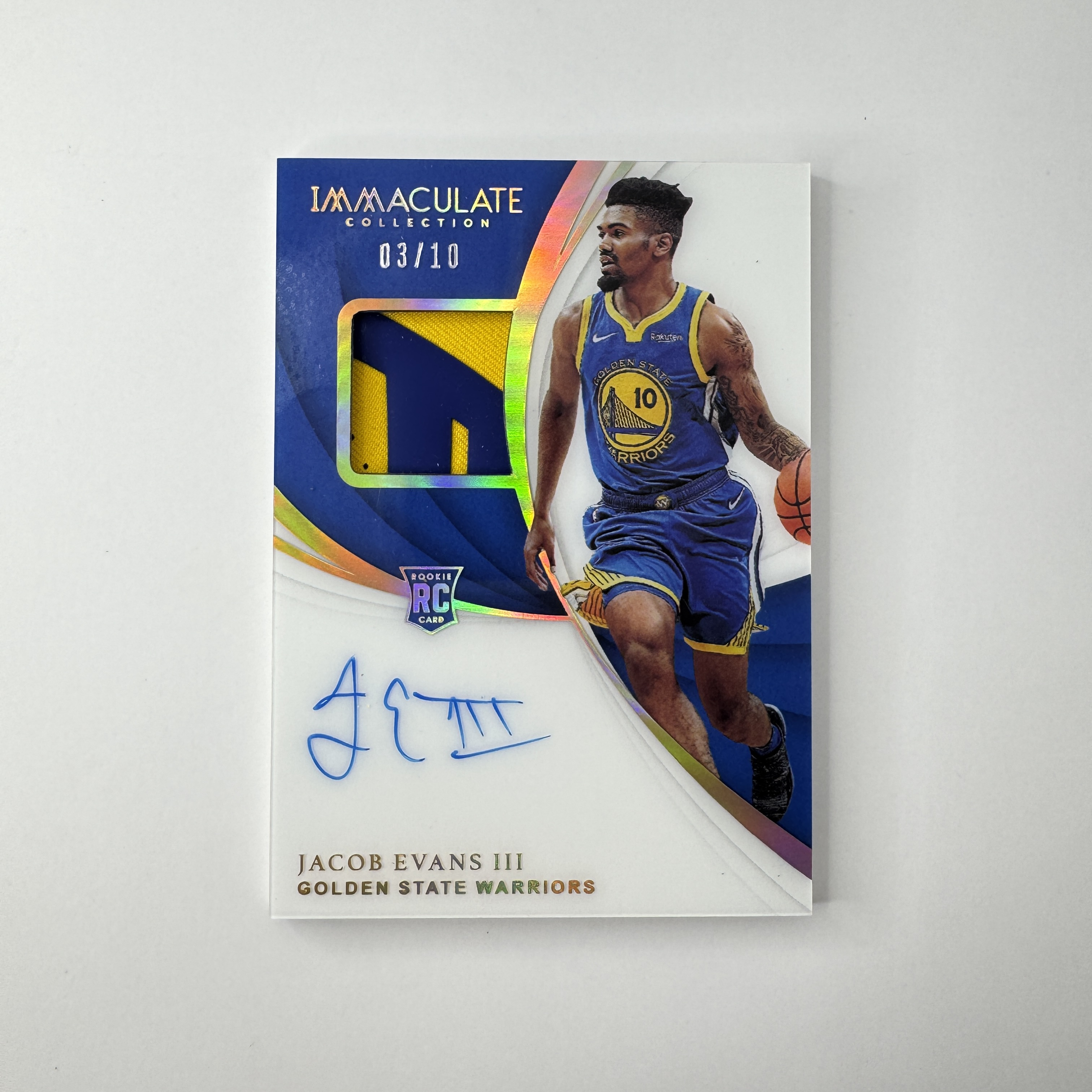 2018-19 Panini Immaculate Jacob Evans RC 雅各布埃文斯 勇士 新秀 签字 卡签 /10编 金平行 超暴力RPA 球衣物料 超新星 收藏必备【Up潮玩拍卖Tt7】