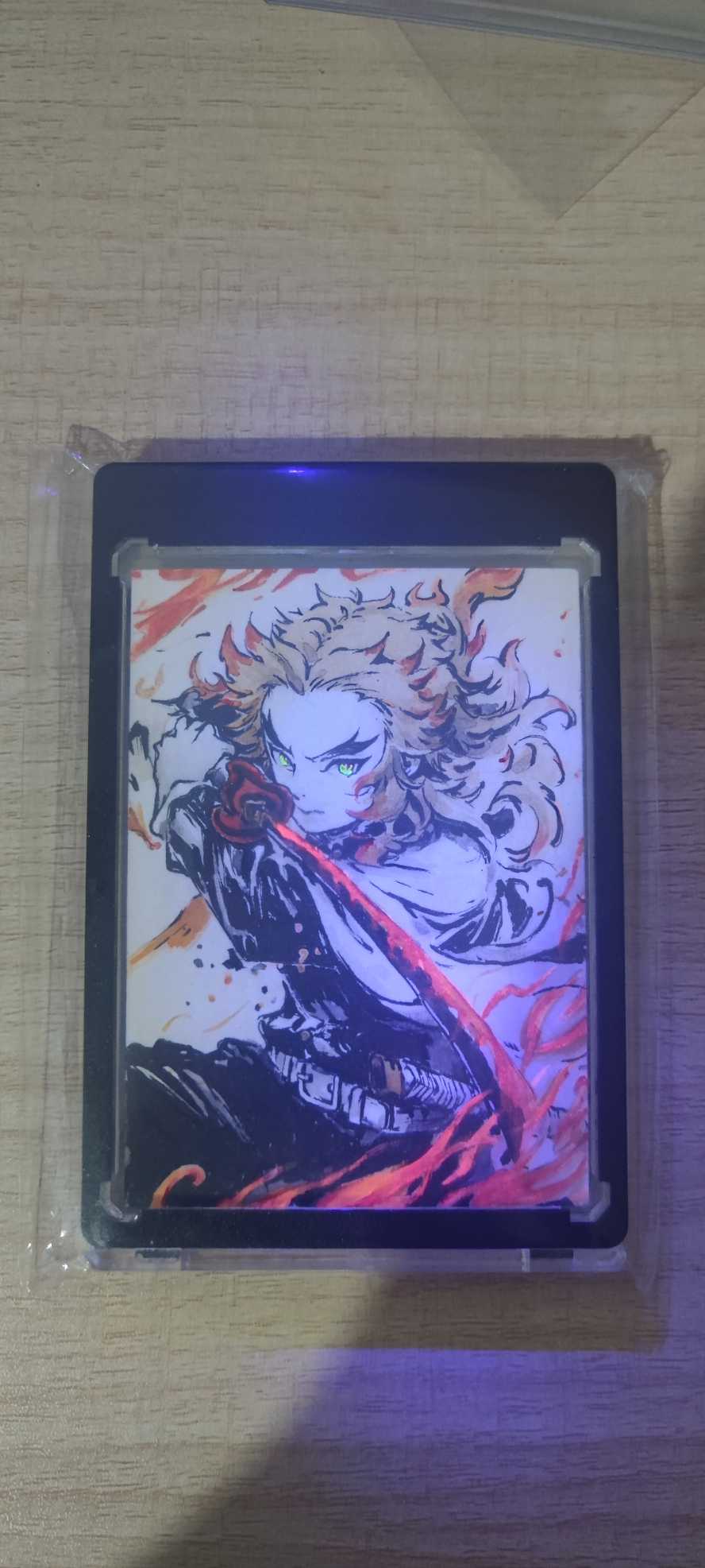 手绘卡 鬼灭之刃 炼狱杏寿郎 大哥 炎柱 卡牌 手绘 1/1 唯一 有特效 紫光灯下 日轮刀呈现火焰色 眼睛也有特效 如图所示 手绘卡 无品相之说 介意慎拍