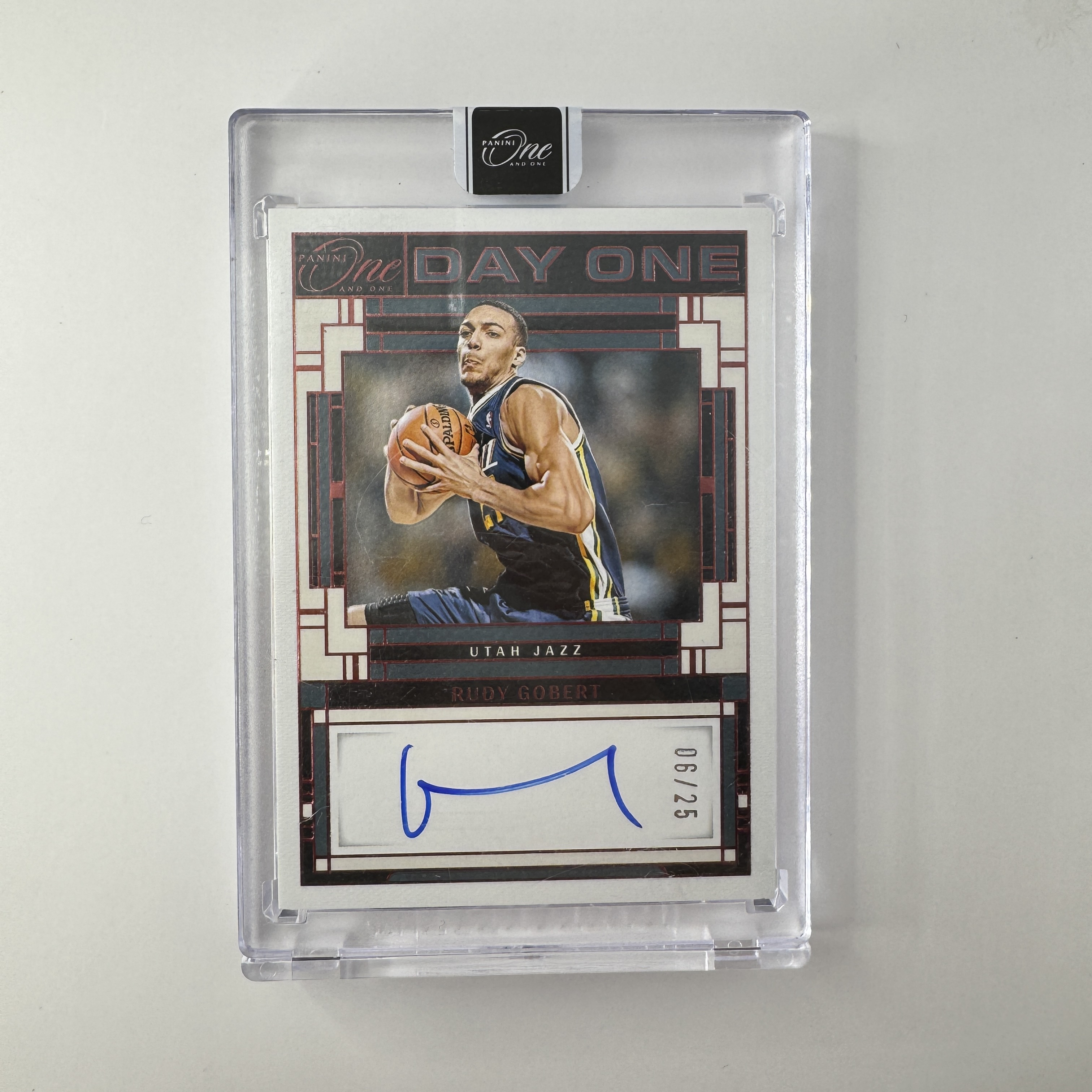2023-24 Panini One and One Rudy Gobert 鲁迪格贝尔 爵士 原封砖 签字 卡签 /25编 新秀首秀签 红平行 收藏必备【Up潮玩拍卖/黑咖啡】