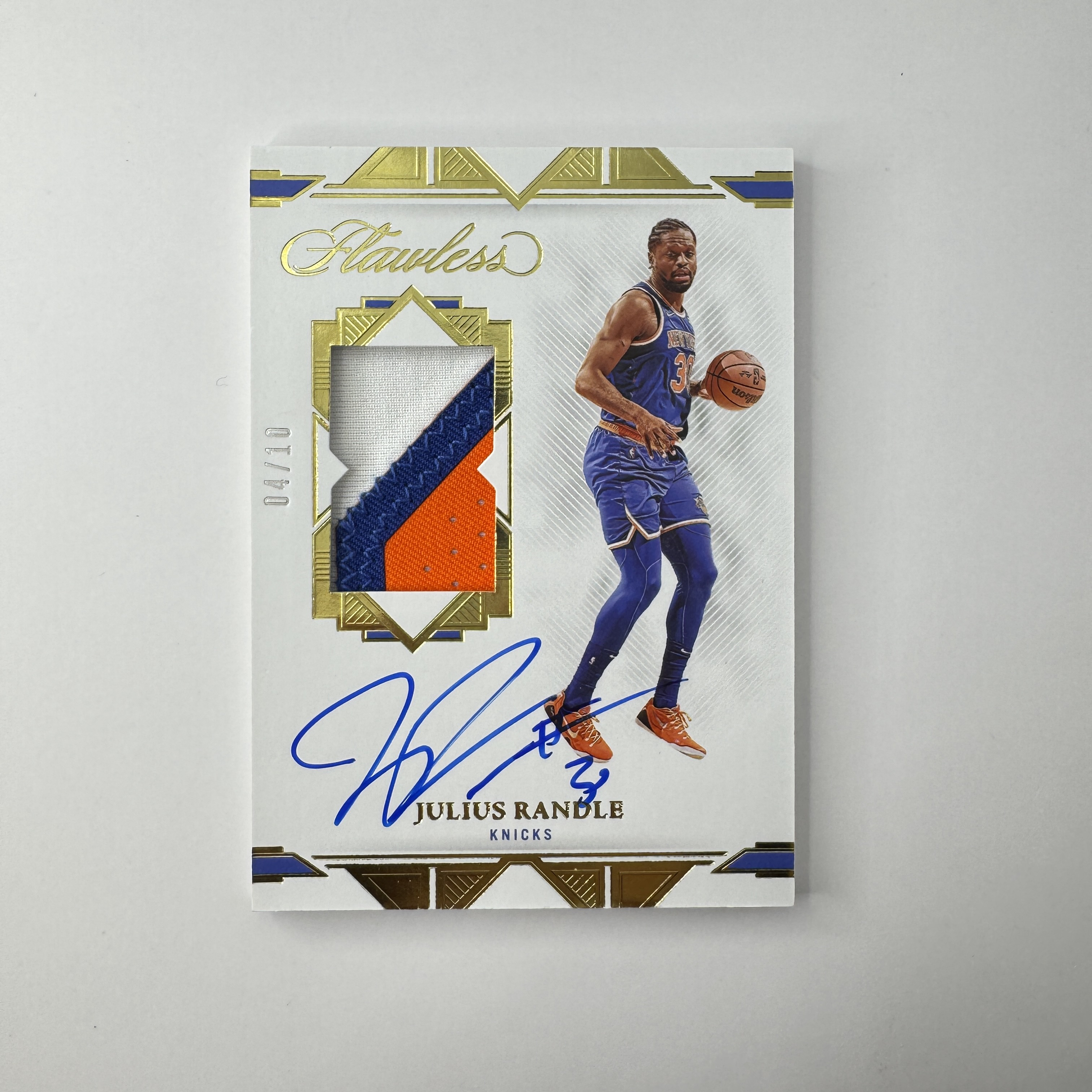 2021-22 Panini Flawless Julius Randle 朱利叶斯兰德尔 尼克斯 手提 签字 卡签 /10编 金平行 PA 球衣物料暴力切割 SPM 瑕疵如图【Up潮玩拍卖/黑咖啡】