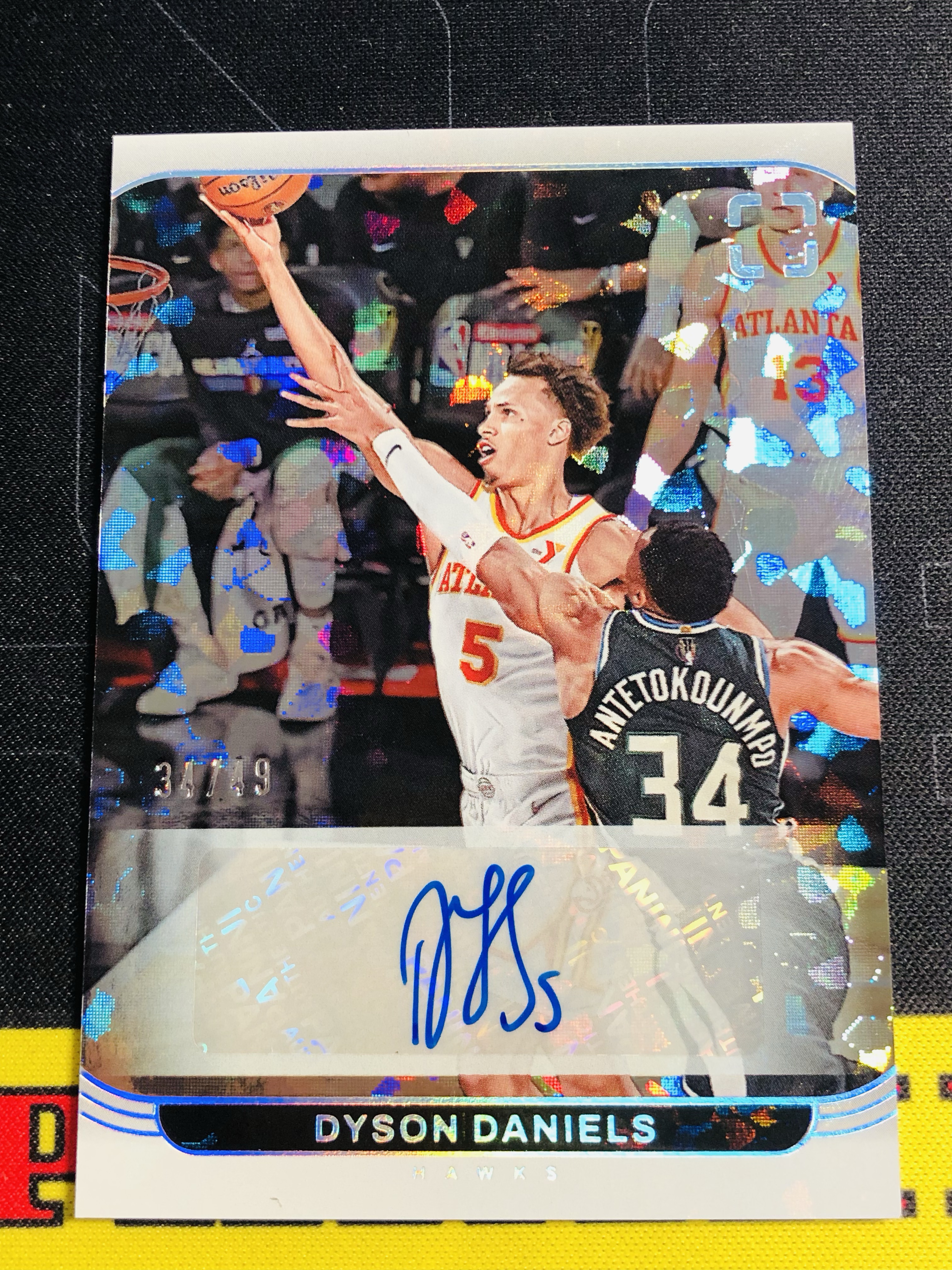 2024-25 Panini Photogenic Dyson Daniels 【MJ23代拍】上镜 老鹰 戴森 丹尼尔斯 34/49编 签字 最美碎冰折 折射 字母哥背景板墨迹完美湛蓝卡品如图 郑总