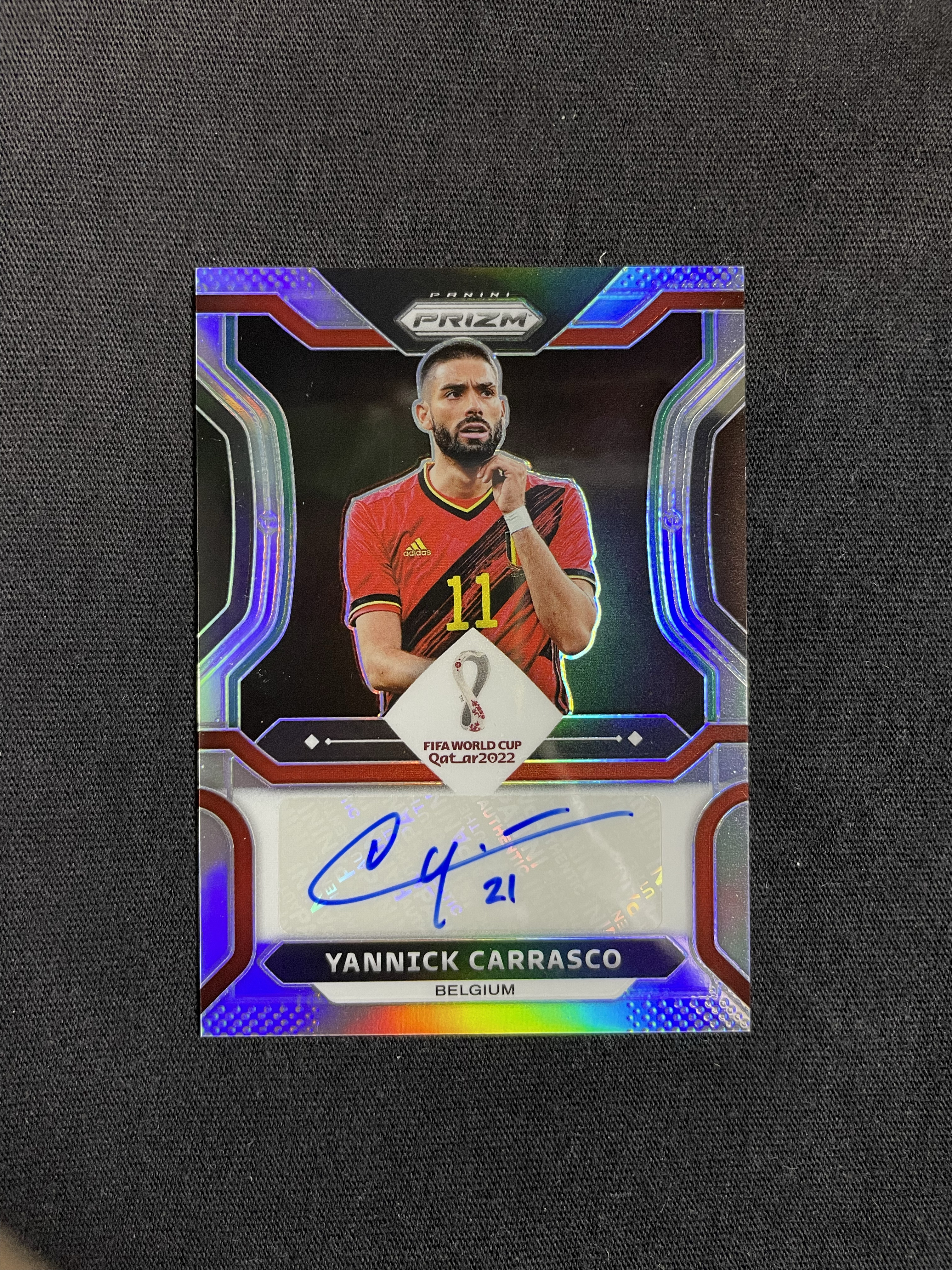 2022 Panini World Cup Prizm Yannick Carrasco 【苦茶子拍卖】卡拉斯科 世界杯pz 签字 签名 银折签 199编 比利时 马德里竞技 大连一方 卡品如图