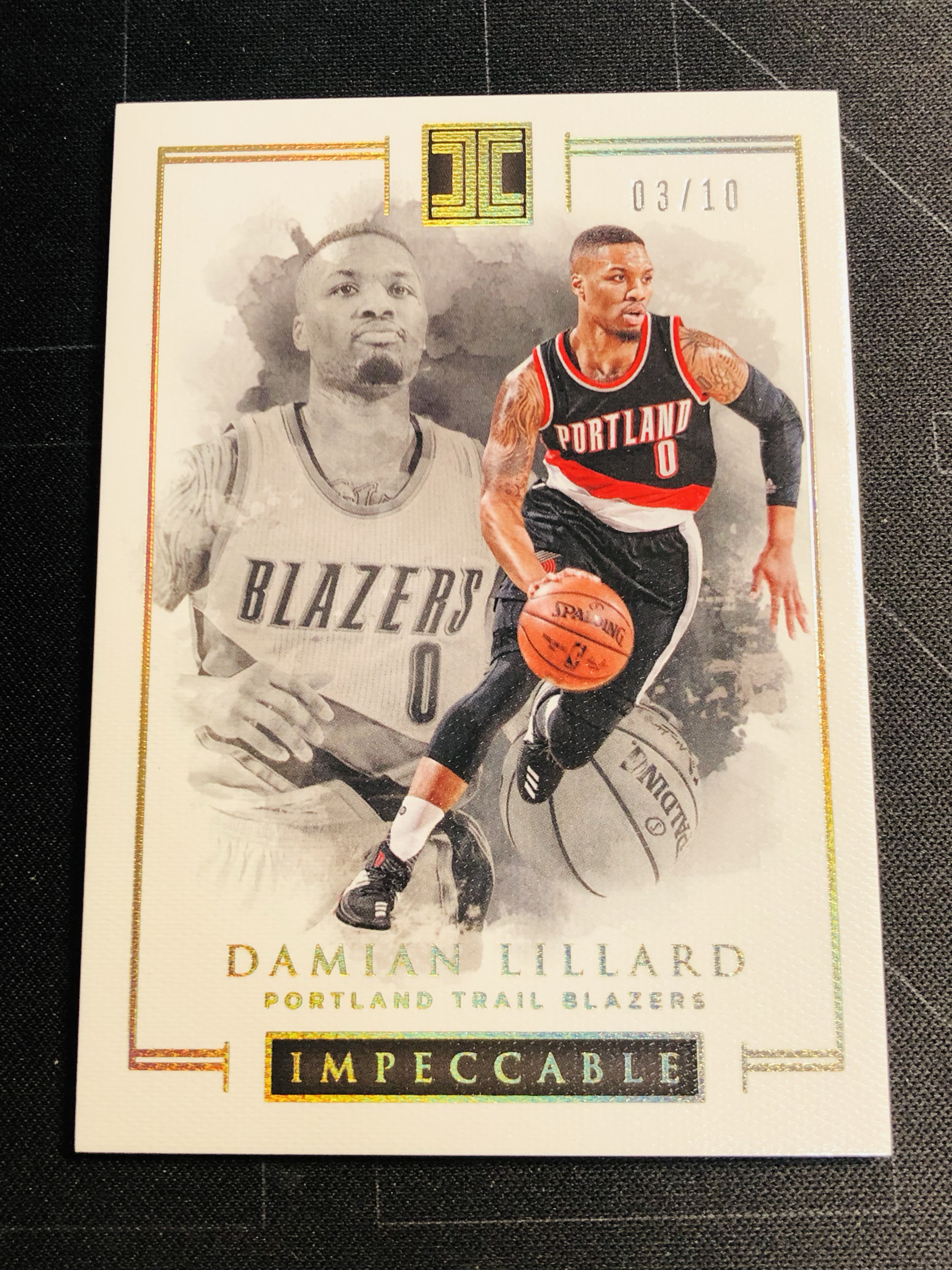 2016-17 Panini Impeccable Damian Lillard 【MJ23代拍】小真金 开拓者 达米安 利拉德 03/10编 闪金版 base 绝杀王 水墨风泼墨设计超低编限量YSL