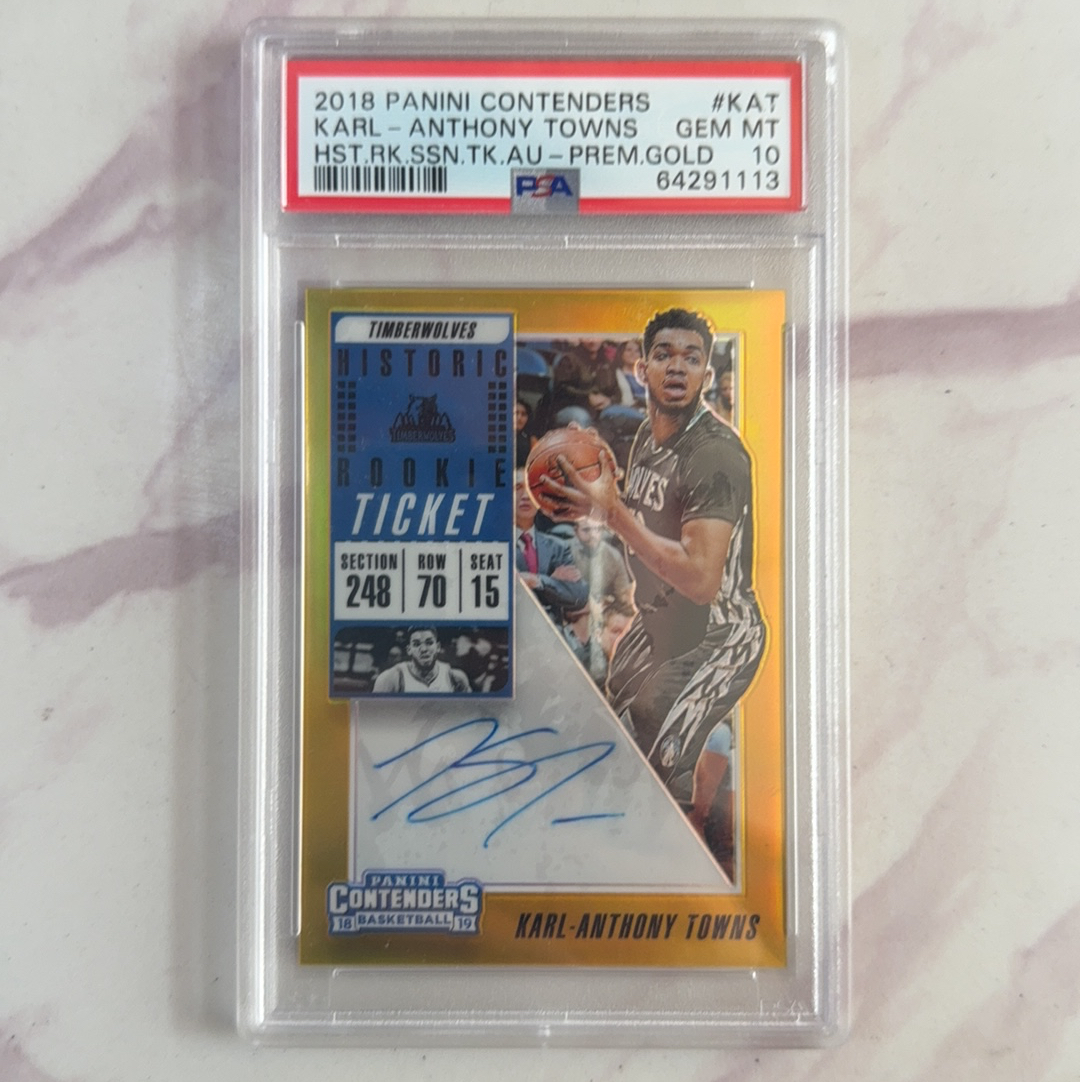 2018-19 Panini Contenders Karl Anthony Towns 【巴夫金代拍】森林狼 新秀 唐斯 金球票 06/10 10编 卡签 尼克斯 psa 10分卡品 评级 小老板