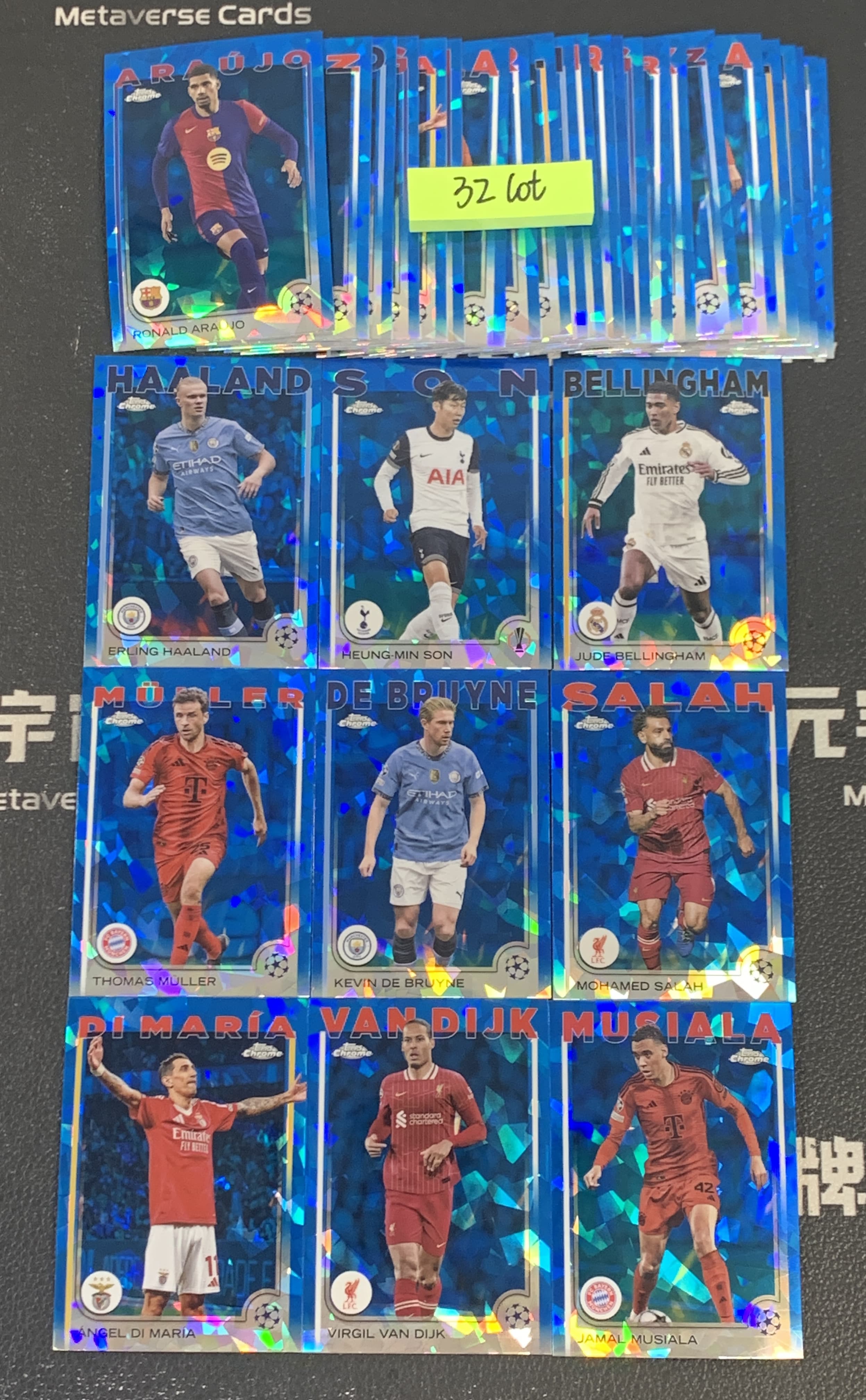 【元宇宙拍卖】柚柚058:2024-25 Topps Chrome 欧冠 蓝宝石 埃尔林哈兰德 孙兴慜 贝林厄姆 托马斯穆勒 凯文德布劳内 萨拉赫 迪马利亚 范戴克 穆夏拉 蓝碎冰折 base 32张打包lot