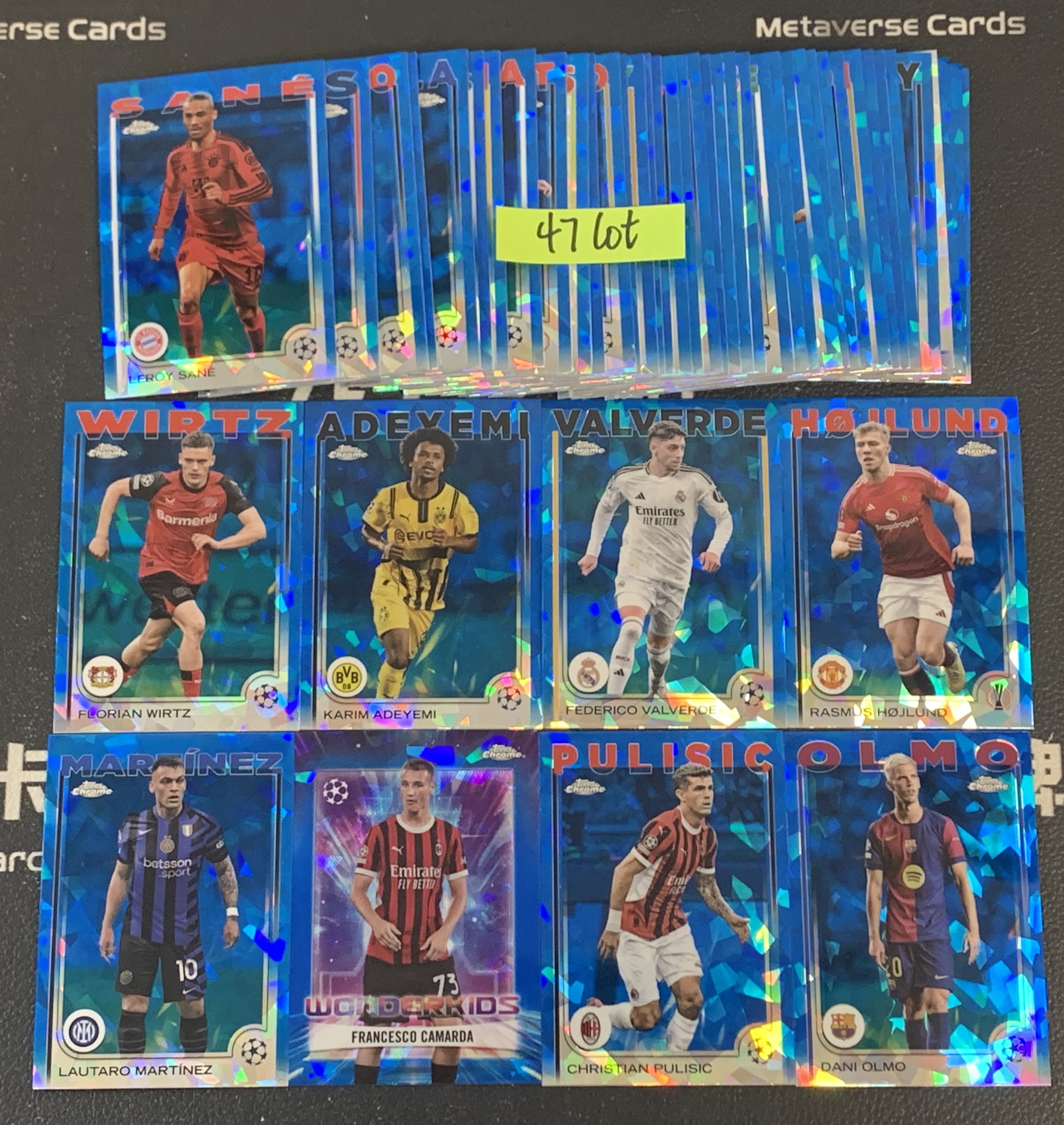 【元宇宙拍卖】柚柚059:2024-25 Topps Chrome 欧冠 蓝宝石 弗洛里安维尔茨 卡里姆阿德耶米 费德里科巴尔韦德 普利希奇 弗朗切斯科卡马尔达 蓝碎冰折 base 神奇小妖特卡 47张打包lot