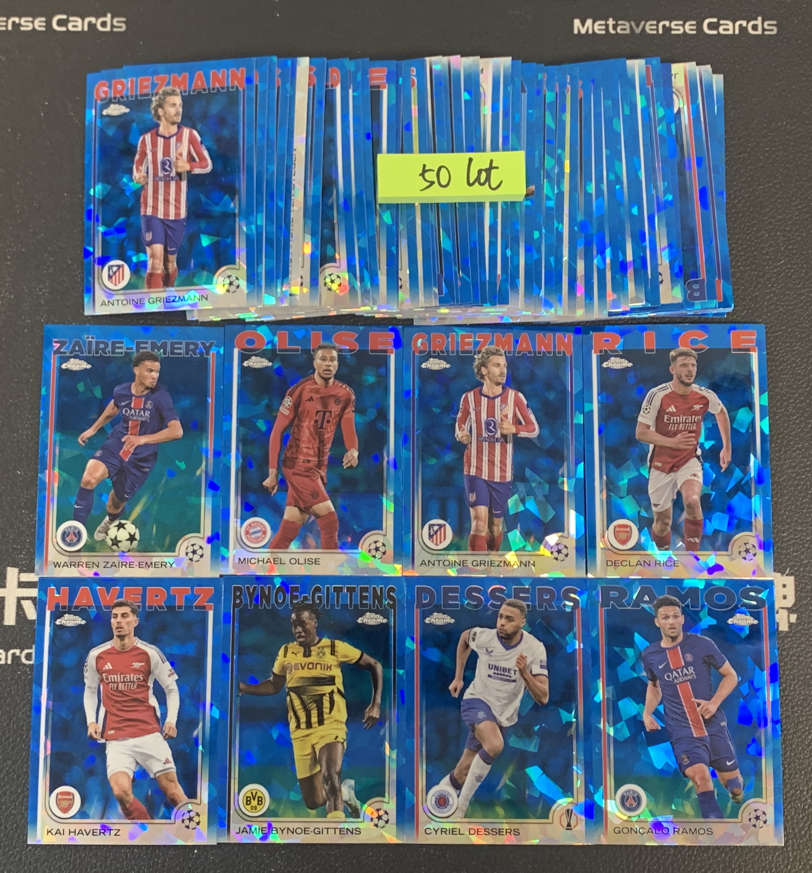 【元宇宙拍卖】柚柚060:2024-25 Topps Chrome 欧冠 蓝宝石 沃伦扎伊尔埃梅里 德克兰赖斯 格列兹曼 凯哈弗茨 迈克尔奥利塞 杰米拜诺吉滕斯 蓝碎冰折 base 50张打包lot