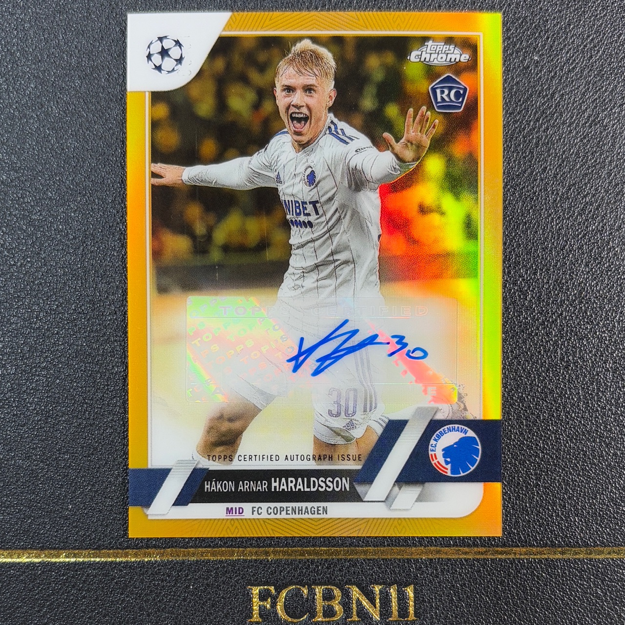 【FCB拍卖】2022-23 TOPPS CHROME HARALDSSON 哈拉尔森 哈拉德森 新秀 RC 签字 50编 11/50 金折签 哥本哈根 冰岛 潜力新星 欧冠 微瑕{OZJ77}FCBN11