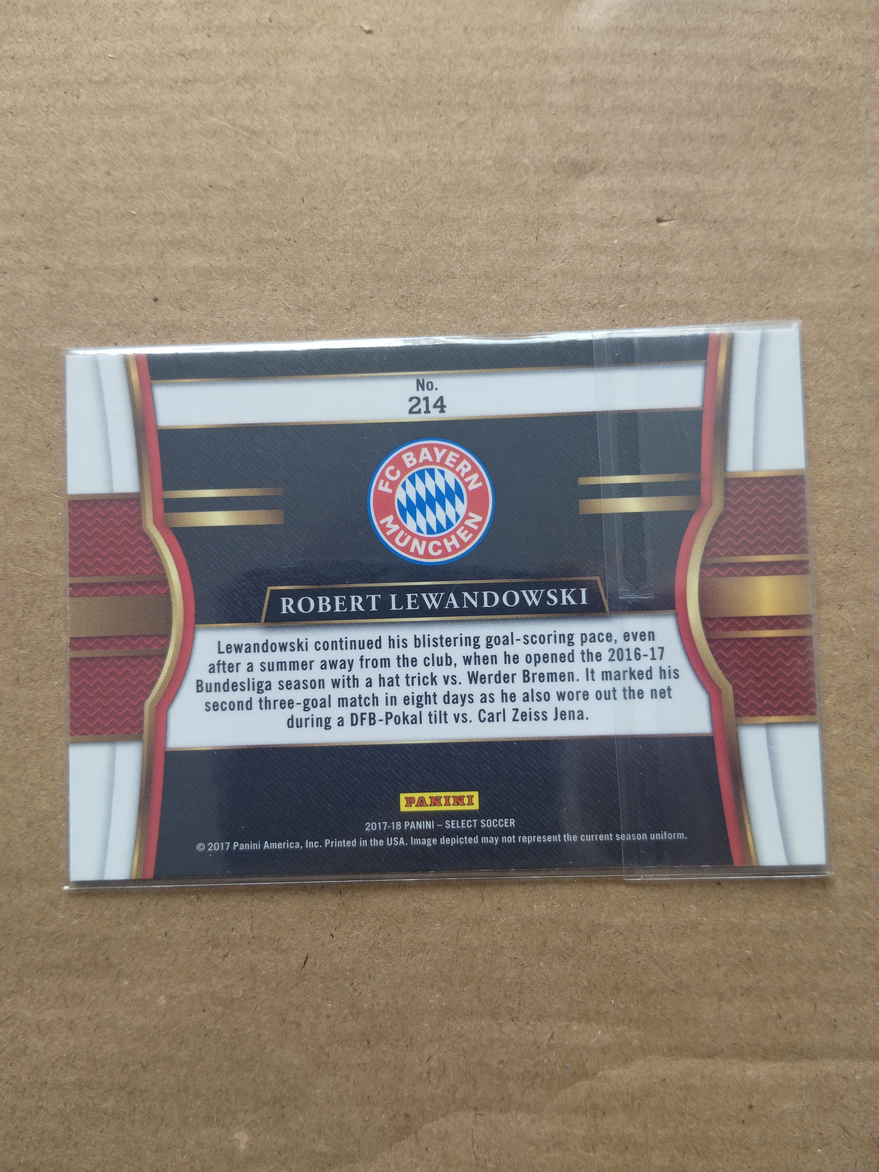 (竞拍前先阅读描述)panini帕尼尼  201718select  三级普卡  拜仁慕尼黑莱万多夫斯基  卡面细划痕   收卡必备