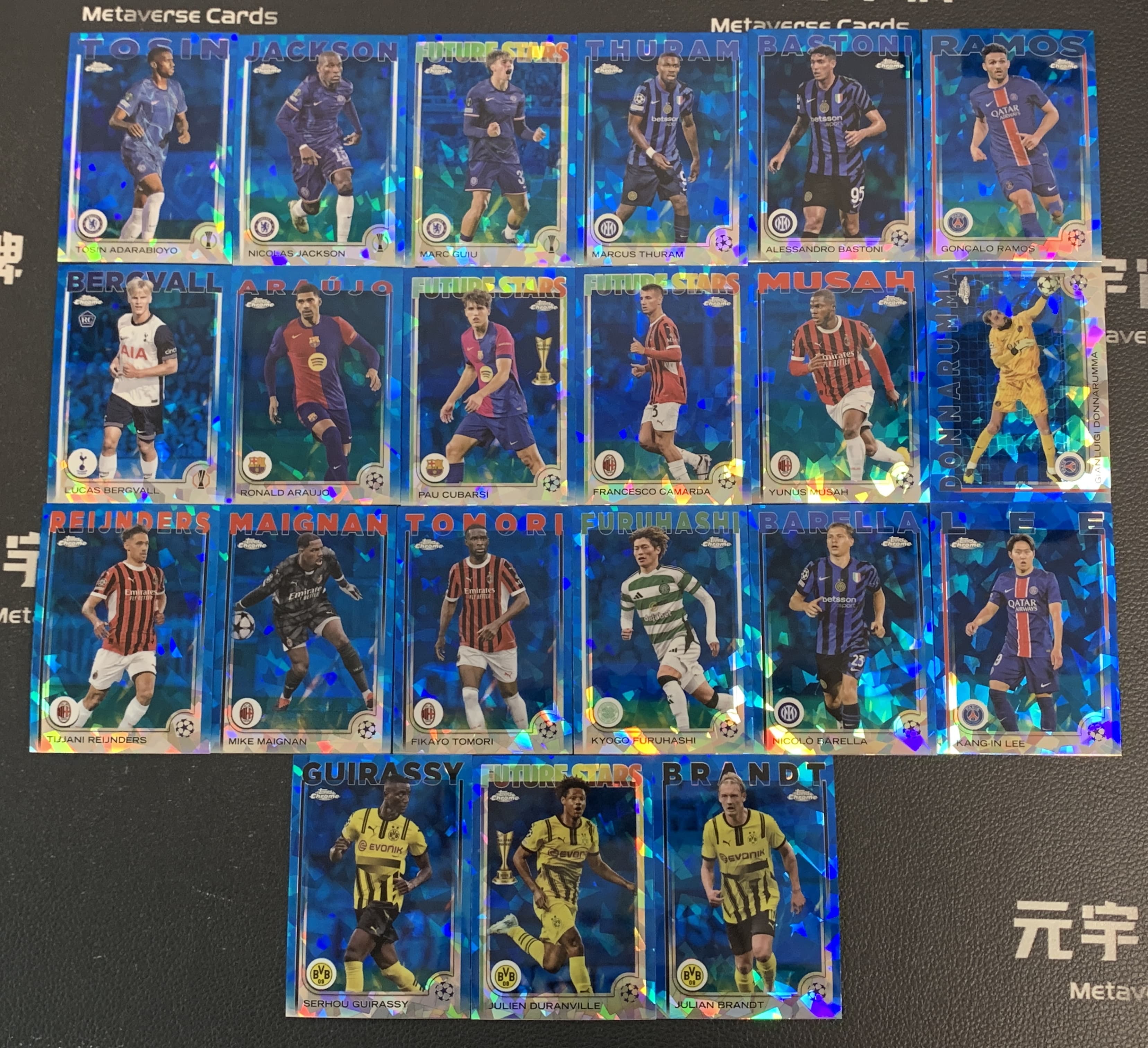 【元宇宙拍卖】LB总012:2024-25 Topps Chrome 欧冠TC 蓝宝石 巴斯托尼 图拉姆 贡萨洛 拉莫斯 库巴西 卡马尔达 多纳鲁马 唐纳鲁马 李刚仁 李康仁 蓝碎冰折 折射 21张lot打包 专收收藏必备