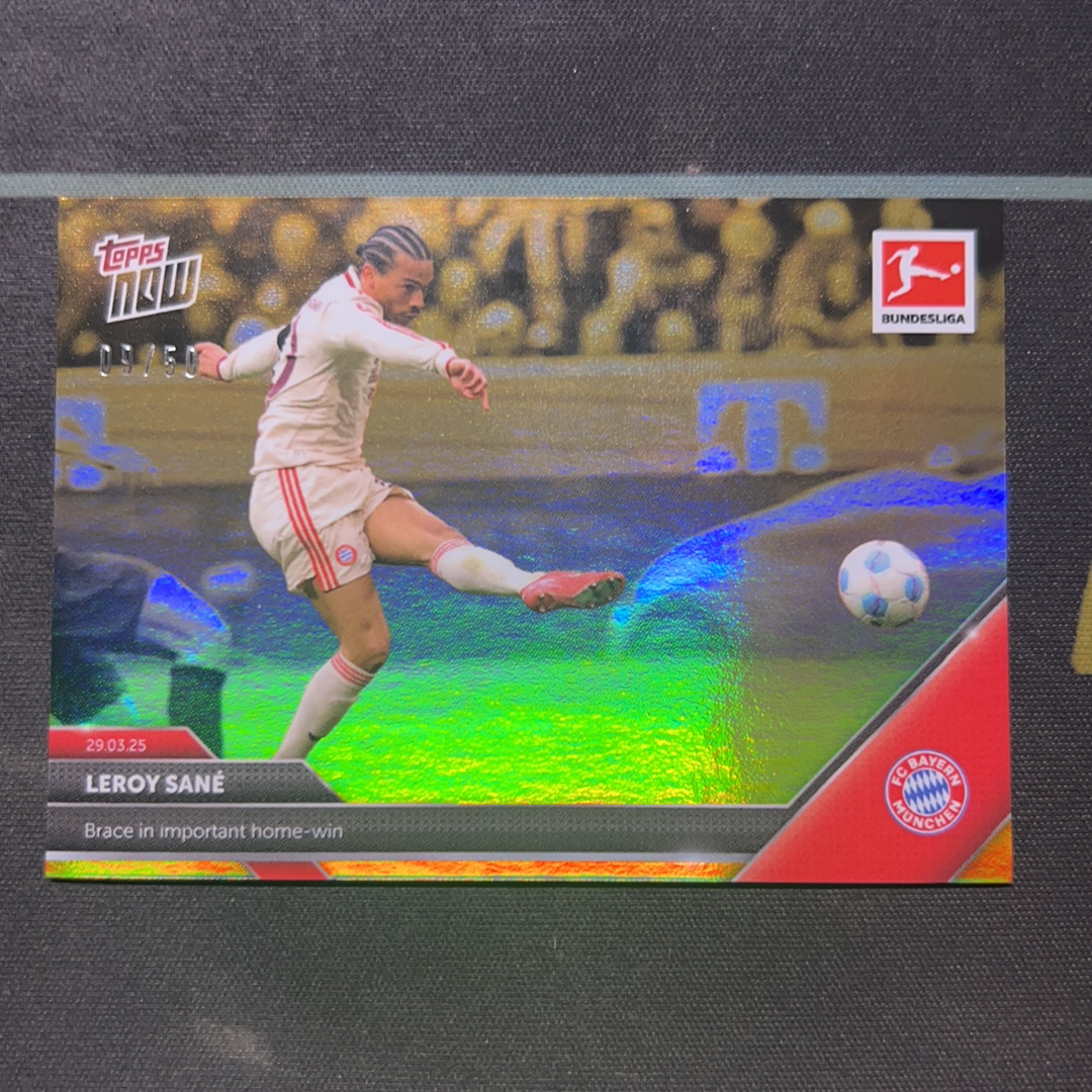 2024-25 Topps Now Leroy Sané 萨内 拜仁慕尼黑 德甲 欧冠 德国 英超 利物浦 阿森纳 曼城 50编 金折 橙折 国内唯一 主场胜利的梅开二度 彩虹套 欧洲杯 实卡精美