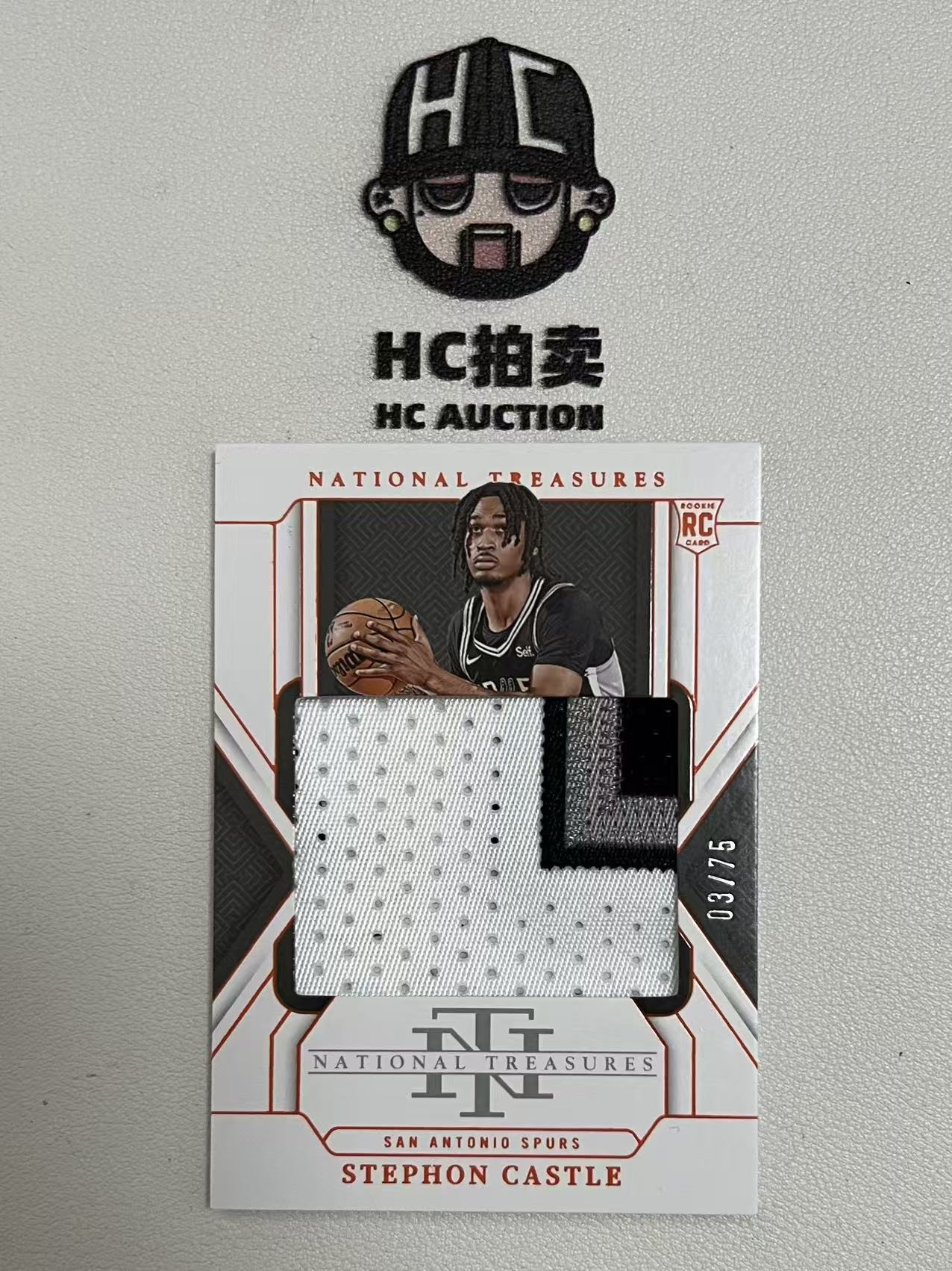 2023-24 Panini National Treasures Stephon Castle RC 【HC拍卖】国宝 斯蒂芬 卡斯尔 新秀 暴力球衣切割 正 RA 75编 微瑕见图 化纤