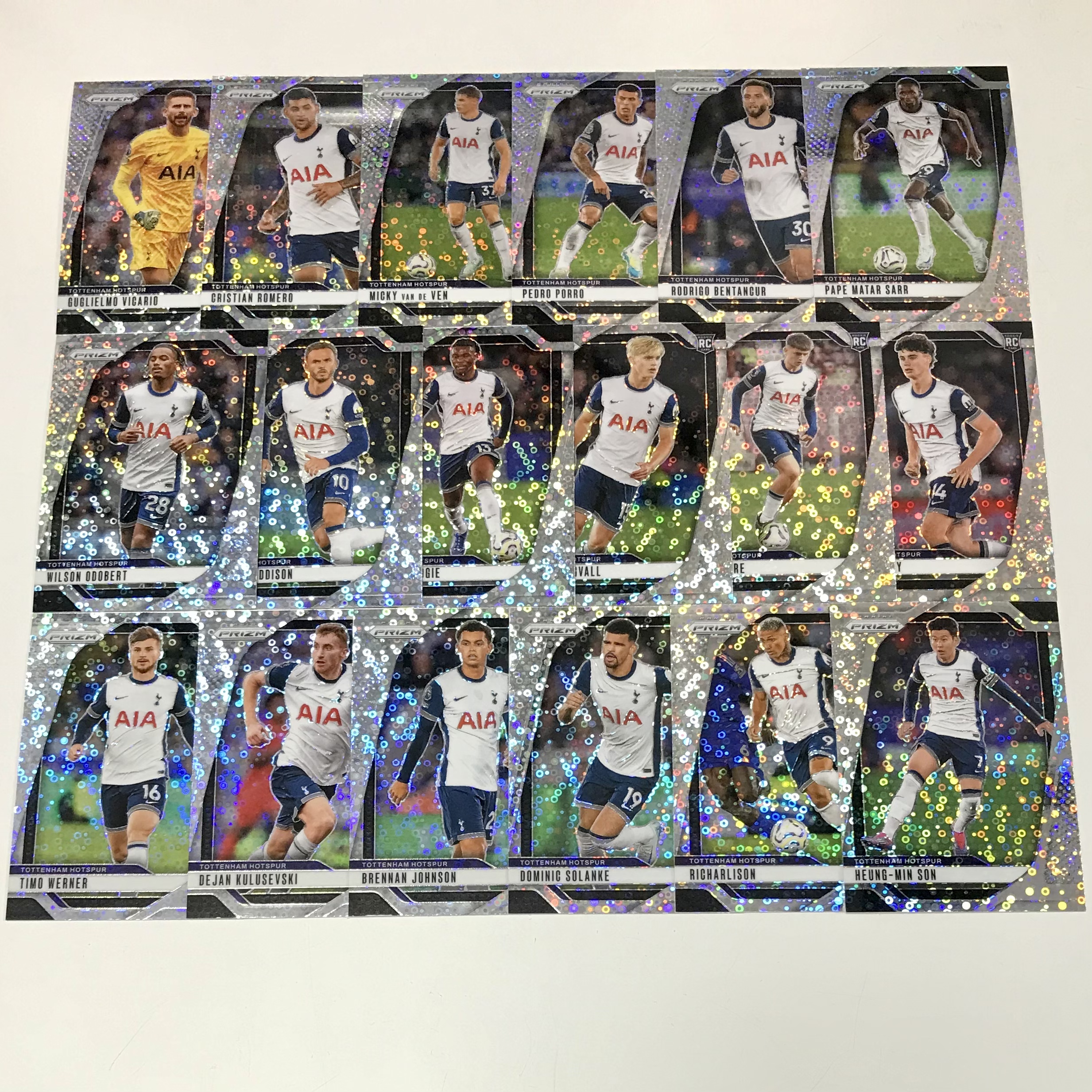 24-25 prizm英超末年 热刺 孙兴慜 理查利松 索兰克 约翰逊 麦迪逊 波罗 库卢 格雷 贝里瓦尔rc 摩尔 萨尔 范德文 维卡里奥 罗梅罗 18张一套齐 点点折泡泡折ba独占打包 卡品如图