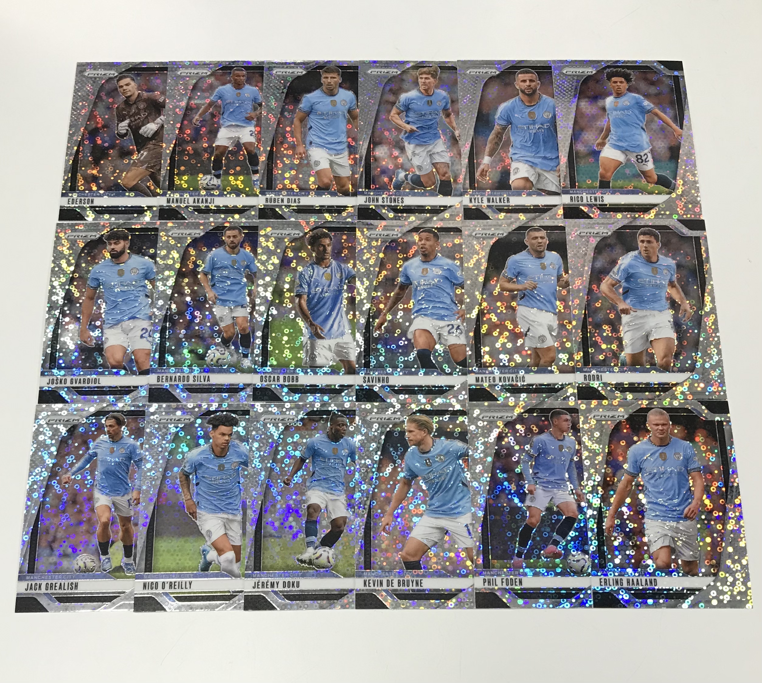 24-25 Prizm英超末年 蓝月亮曼城 哈兰德 德布劳内 丁丁 多库 格拉利什 罗德里 福登 奥莱利rc B席 格瓦迪奥尔 迪亚斯 沃克 埃德森 18张一套齐 点点折泡泡折ba独占打包 卡品如图