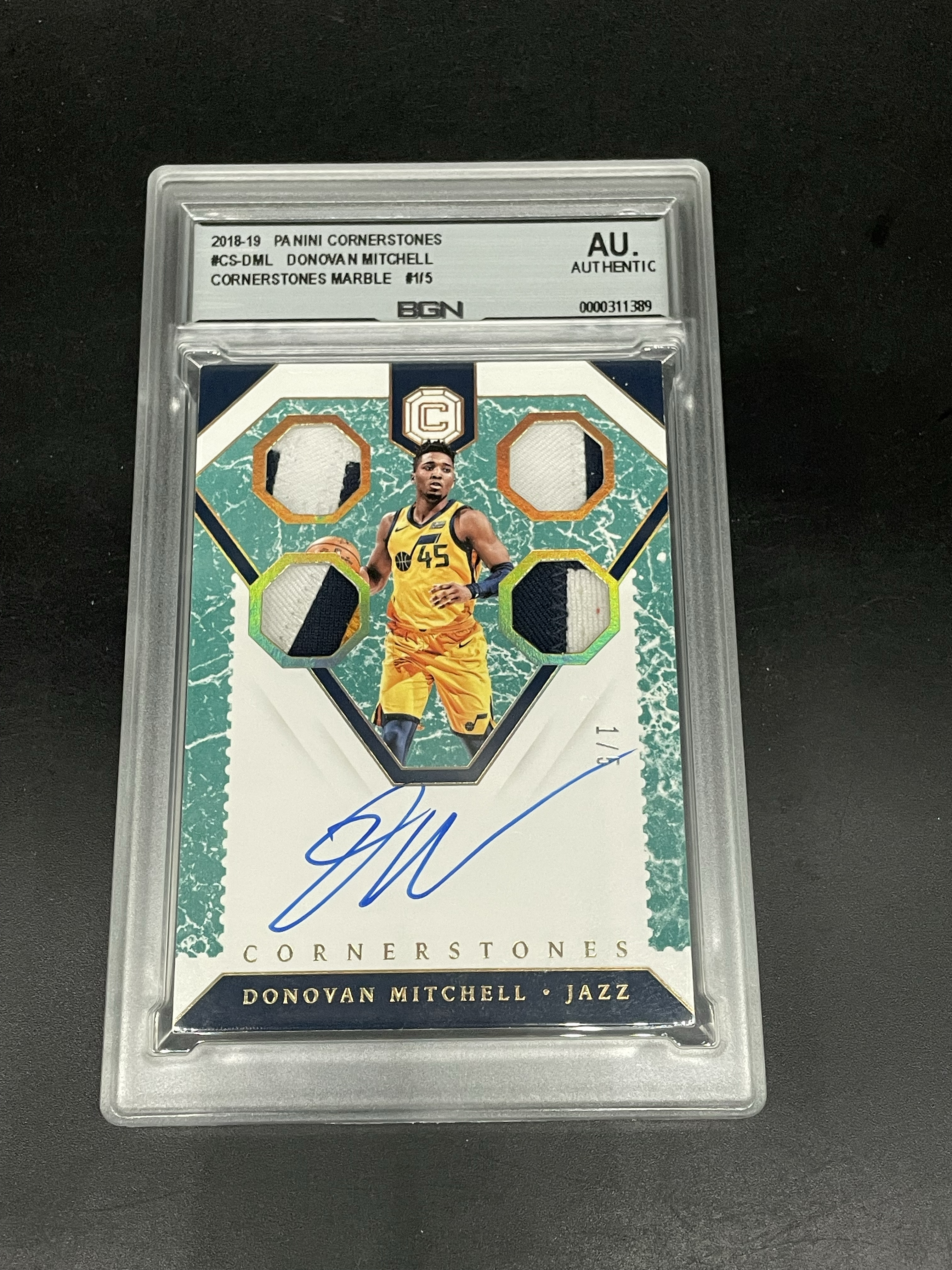 2018-19 Panini Cornerstones Donovan Mitchell 【白鸟代卖】大理石 多诺万 米切尔 1/5编 首编 PA 签字 卡签 四窗patch球衣 BGN评级 炒面馆