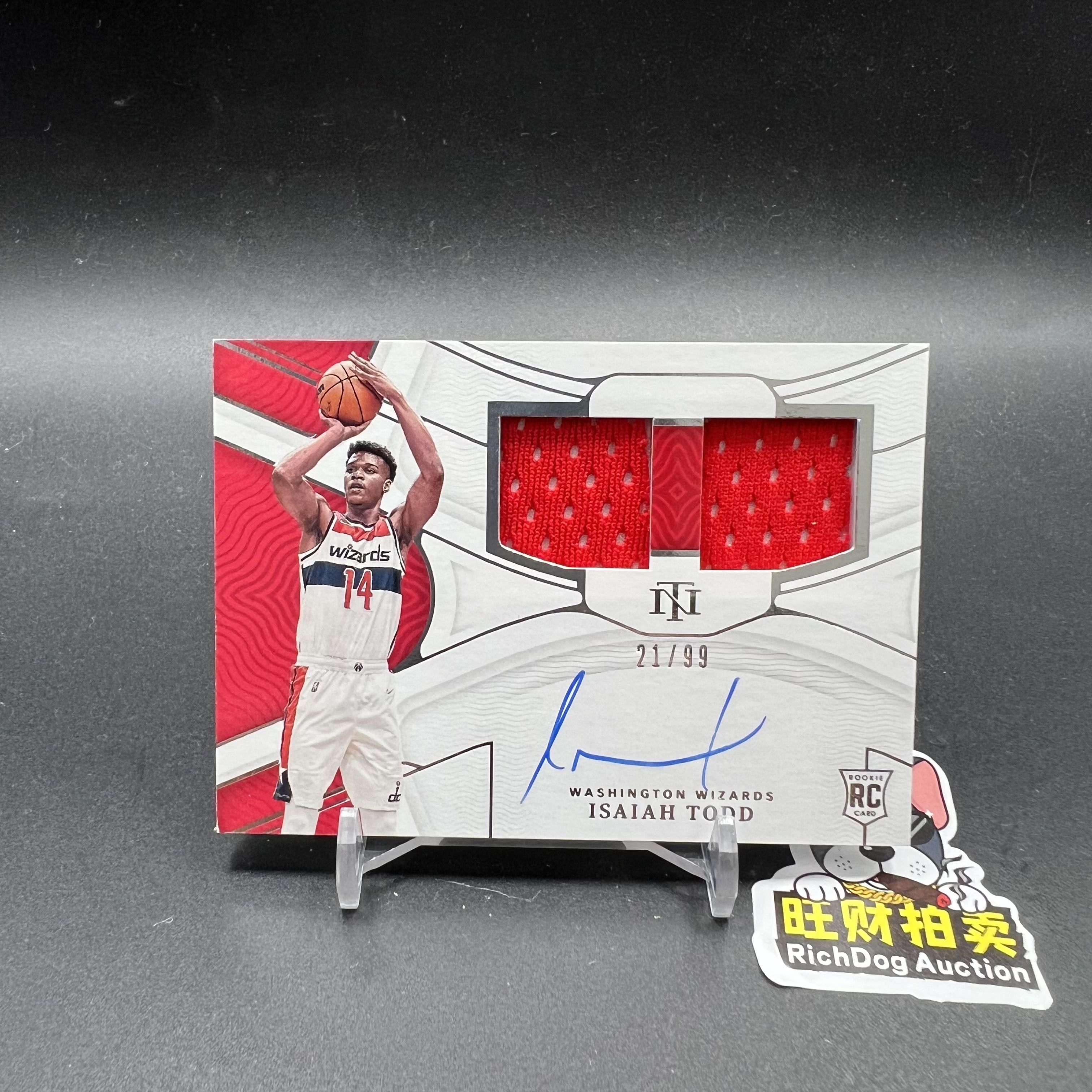 【旺财拍卖A】N48 2021-22 Panini 国宝 奇才 Isaiah Todd 以赛亚 托德 RC新秀 双窗球衣签字 rpa /99编 卡签 瑕疵如图 红桃桃红