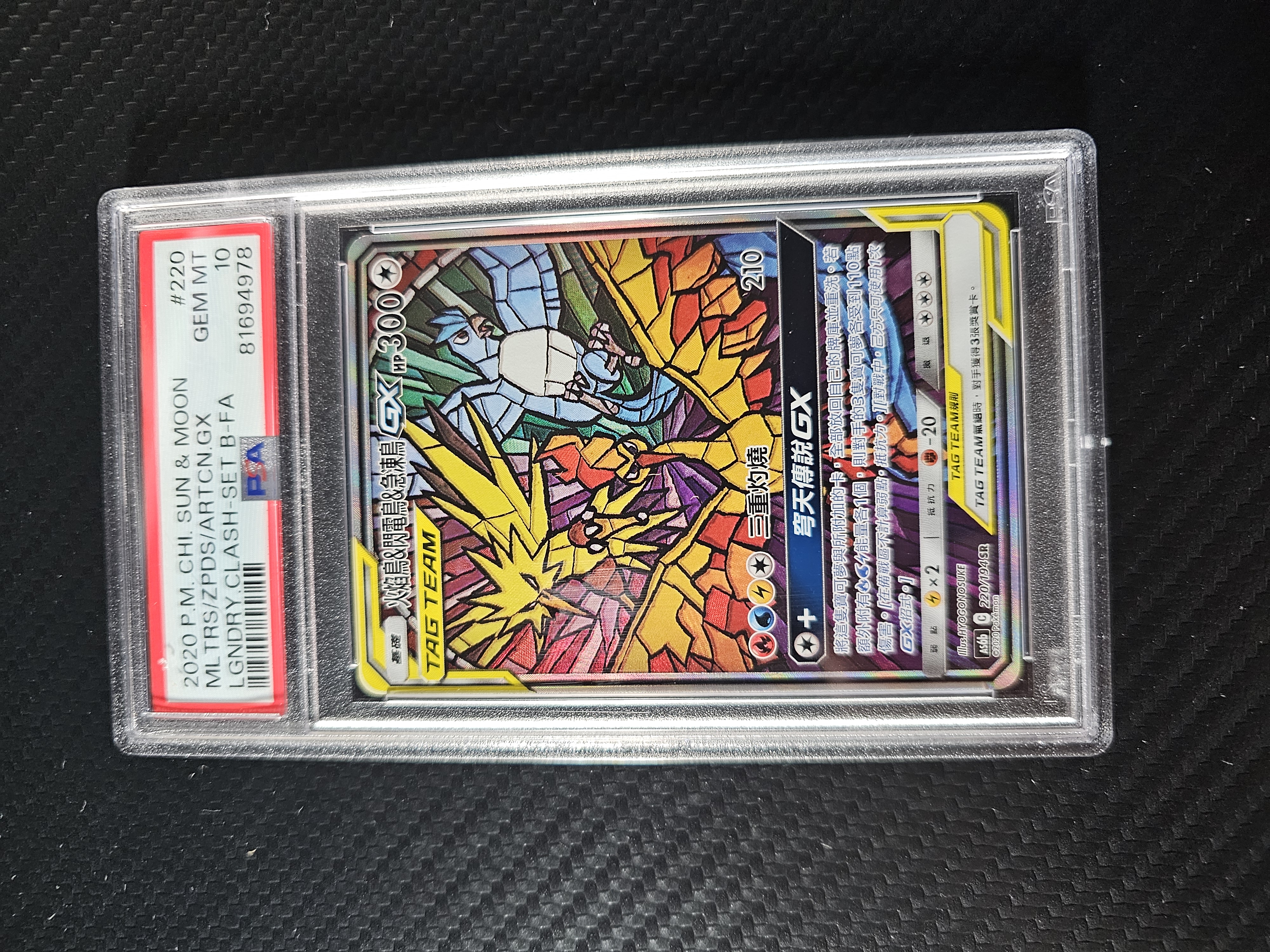火焰鸟 闪电鸟 急冻鸟 GX 三神鸟 大手绘 PSA10 AS6b 220/194 SR 日月 繁中 宝可梦 2020 Pokemon TCG SR PSA 10分【KR宝可梦拍卖】