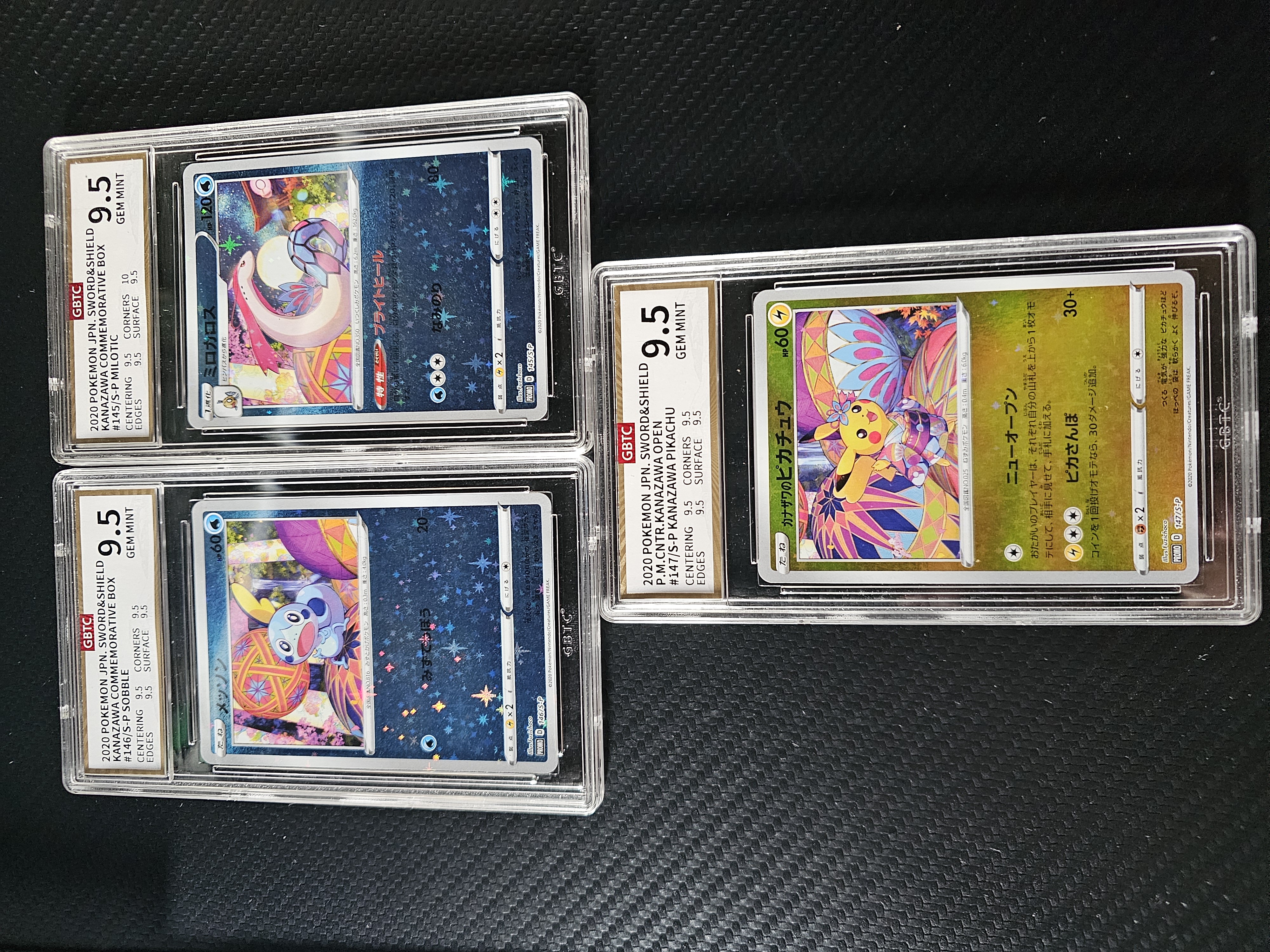 2020 Pokemon TCG PROMO PTCG 宝可梦 日版 ja 皮卡丘 大金泽皮卡丘 美纳斯 泪眼蜥 147/S-P GBTC 9.5 金泽礼盒三张全套 【KR宝可梦拍卖】】