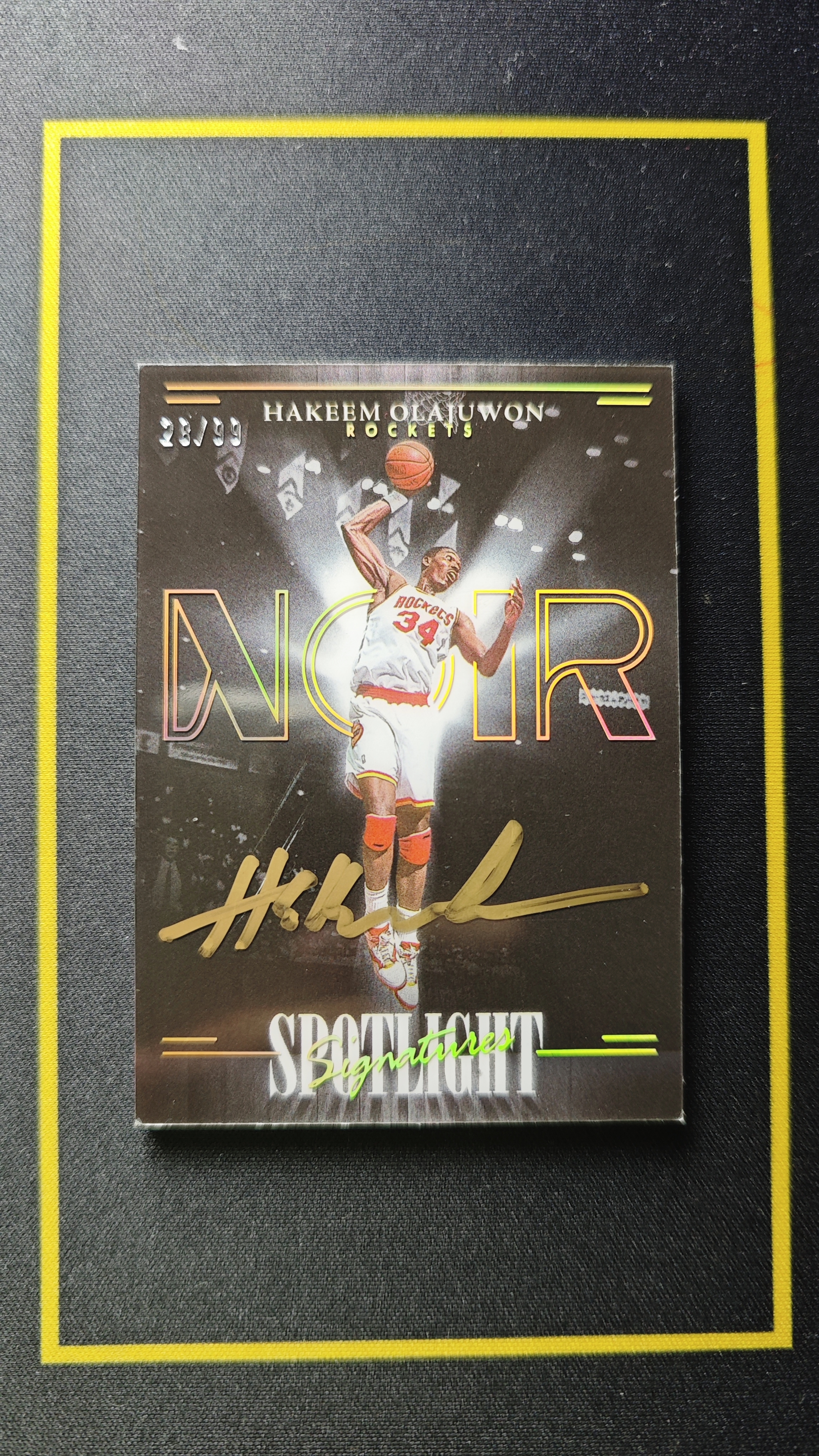 2023-24 Panini Noir Hakeem Olajuwon 哈基姆 奥拉朱旺 聚光灯 88/99编 金笔签 签字 卡签 镜面 梦幻脚步 大梦 火箭 诺尔 名人堂 卡品如图 专收必备 姚明前辈