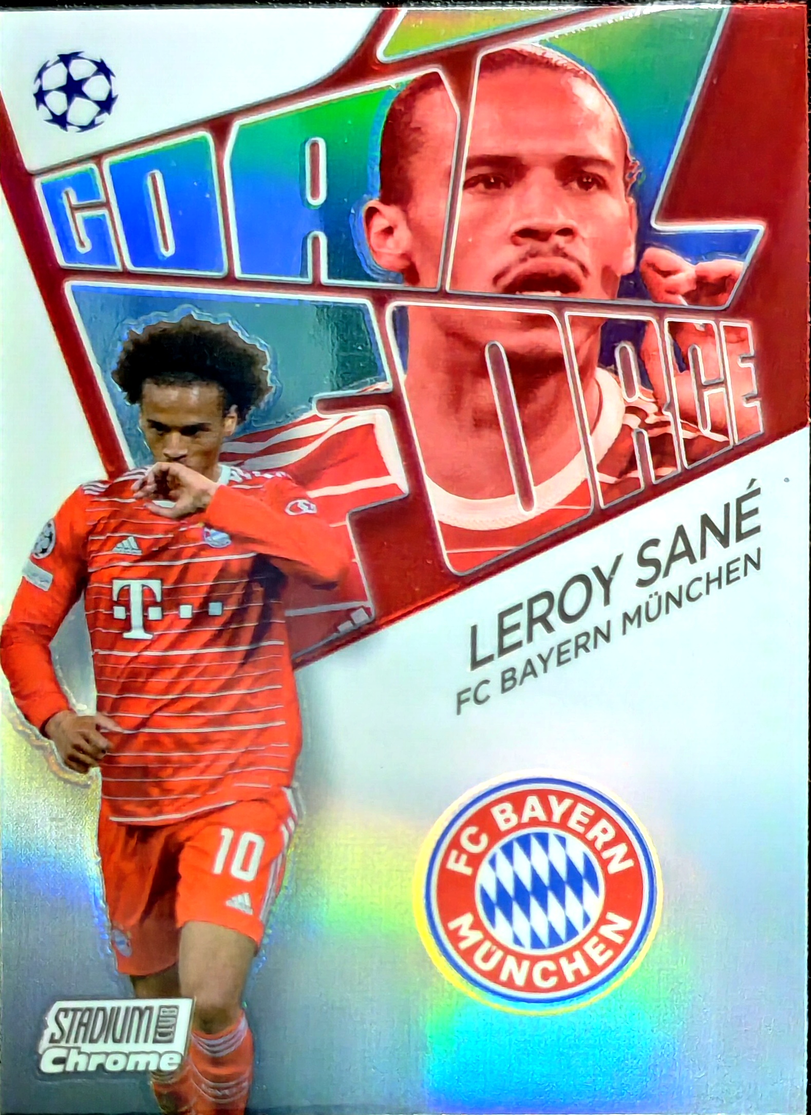 【K代拍】2023 Panini Stadium Club Chrome leroy sane 勒鲁瓦·萨内 拜仁 Goal Force 目标特卡 竞技场 银折