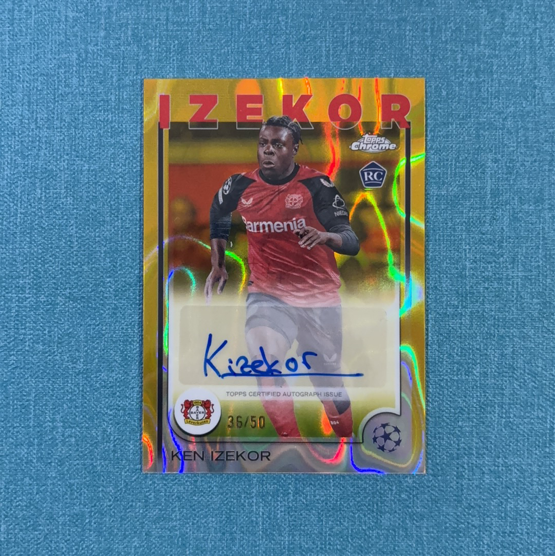 2024-25 Topps Chrome 欧战 Ken Izekor 伊泽克尔 签字 36/50编 新秀 RC 金熔岩折 金折 勒沃库森 卡品如图 FNG