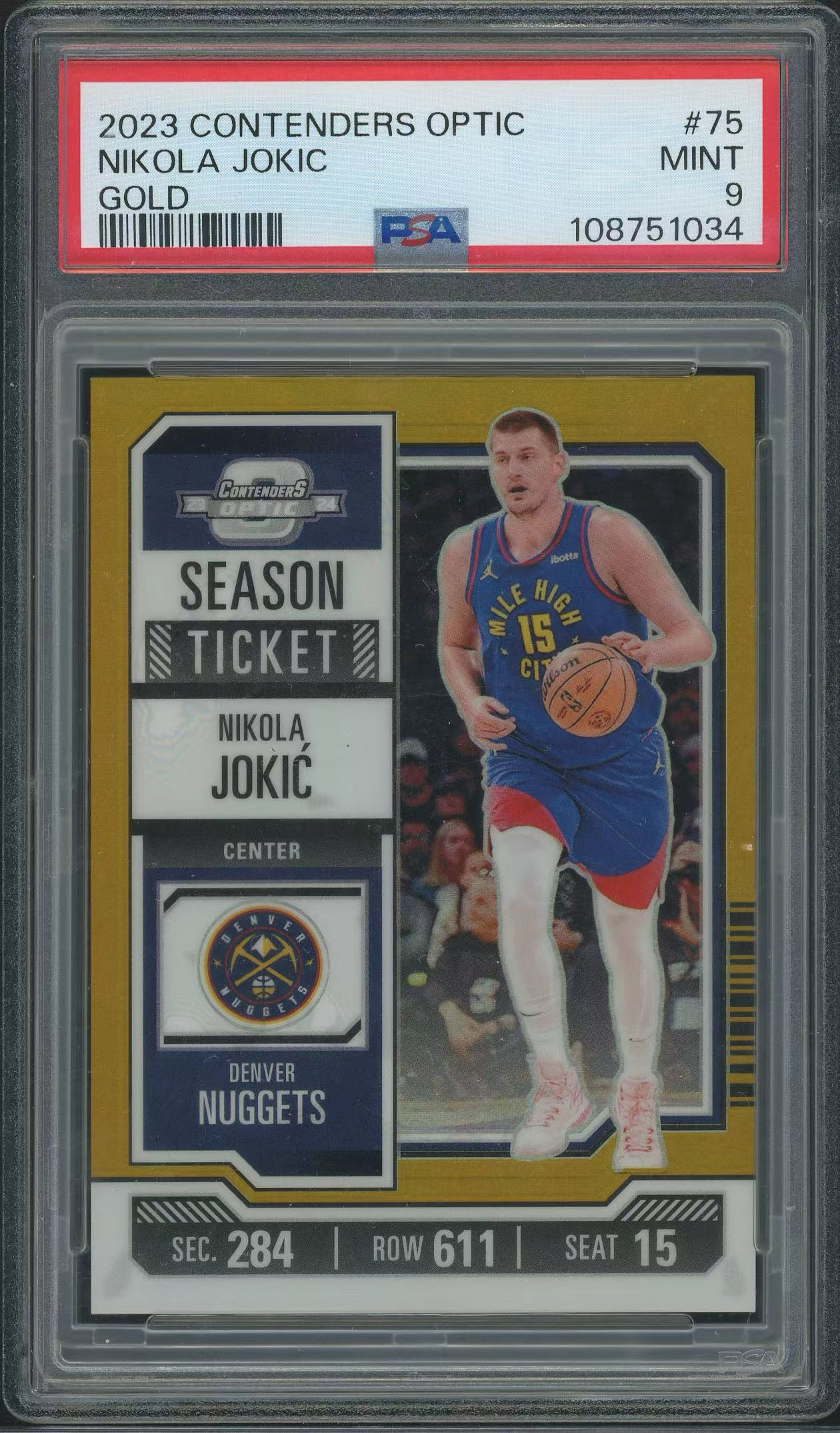 2023-24 Panini Contenders Optic Nikola Jokic 帕尼尼 球票 掘金 尼古拉 约基奇 约老师 金折 05/10编 低编 评级卡 PSA9