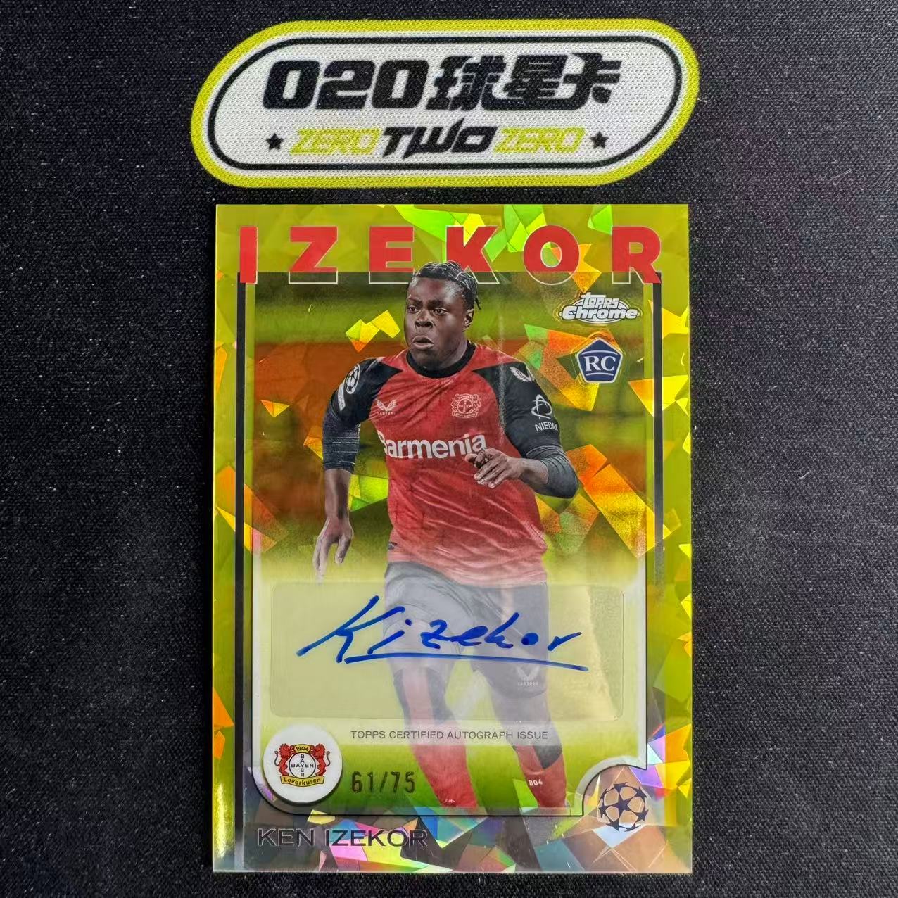2024-25 Topps Chrome Ken Izekor 欧冠蓝宝石 伊泽科尔 新秀RC 61/75编 黄碎冰折 签字 勒沃库森(小赵)