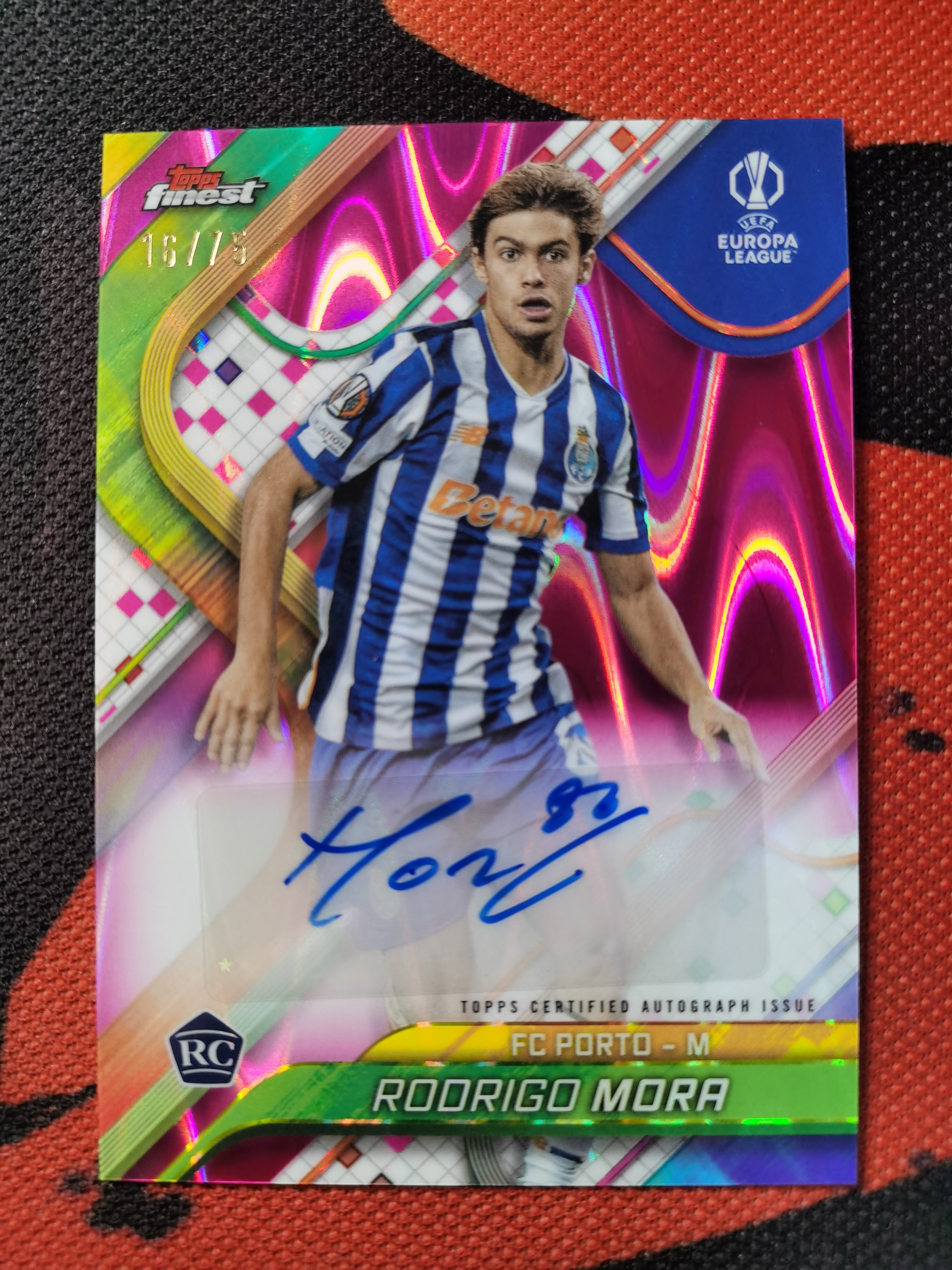 2024-25 Topps Finest Rodrigo Mora RC 葡萄牙 葡超 波尔图 新秀 罗德里戈 莫拉 签字 完美签 16/75编 粉熔岩 折射 凑套收藏必备 卡品如图