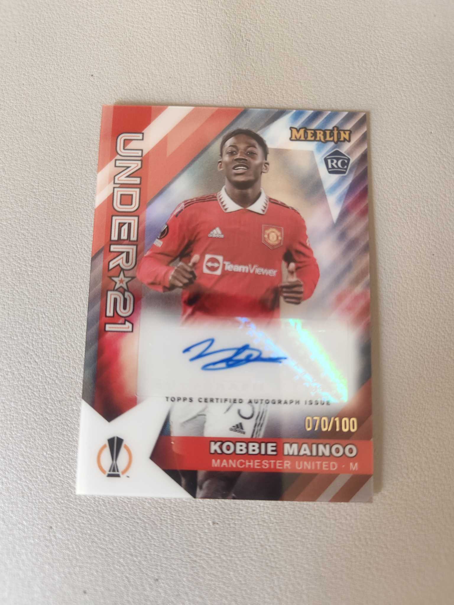 【佩妮拍卖】2023 Topps Merlin RC 梅林 曼联 kobbie mainoo 科比 梅努 U21新秀特卡 签字 070/100编 卡品如图 拍前请阅读描述 霏霏0830