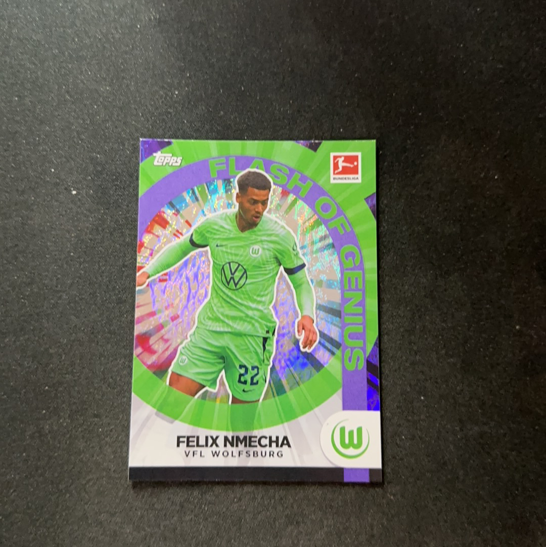 2023 Topps Chrome Felix Nmecha 2023德甲碧玉 沃尔夫斯堡 多特蒙德 德国国脚 菲利克斯 恩梅查 12/15编 Flash of Genius特卡 白玉折