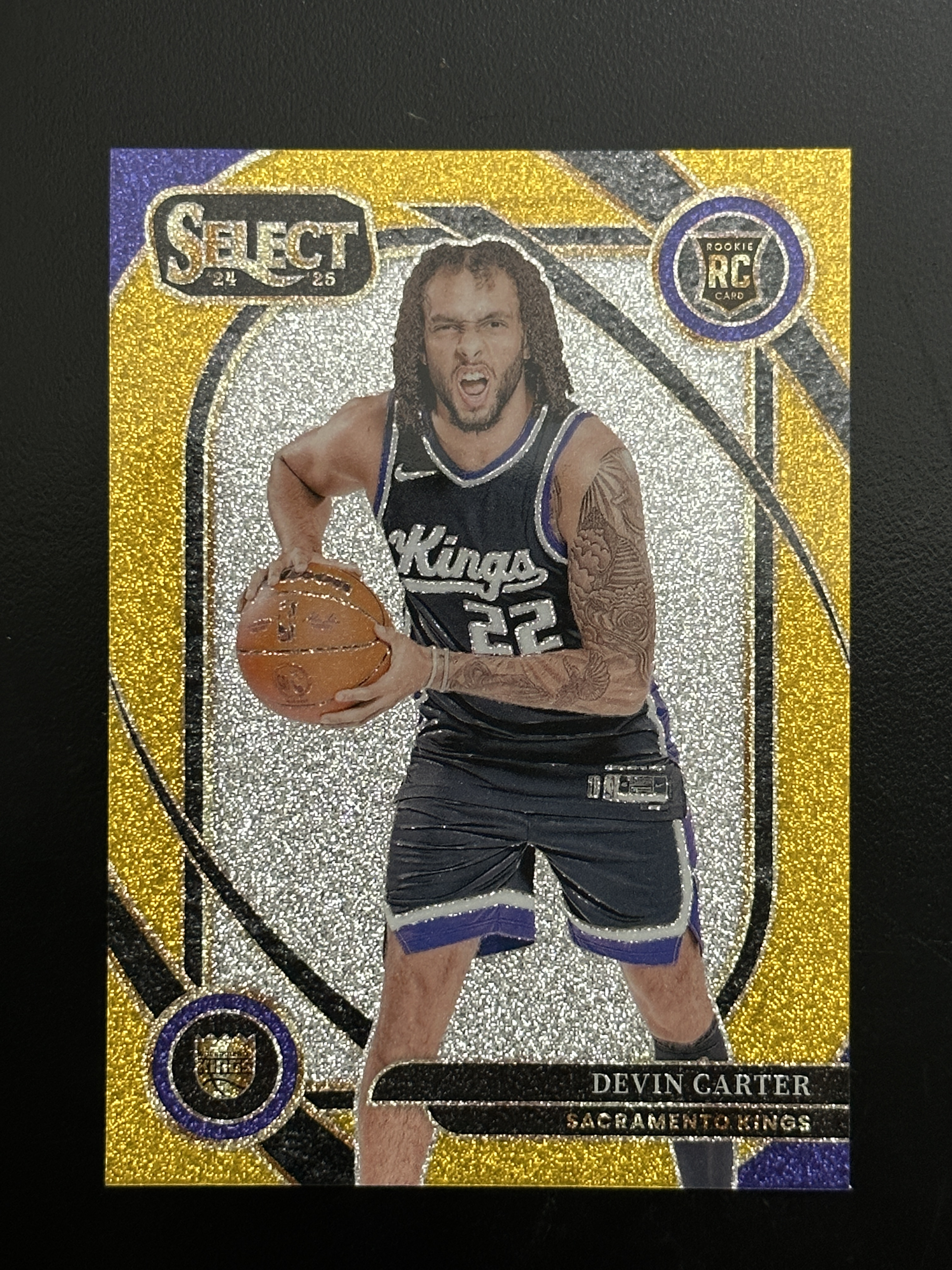 2024-25 Panini Select Devin Carter RC 德文卡特 国王 新秀 三级 金闪折 金碎点折 大比例 SSP 折射 微瑕如图-贤
