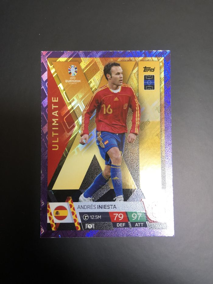 2023-24 Topps match attax Andres Iniesta 欧洲杯 游戏版 最佳11人特卡 伊涅斯塔 西班牙 巴萨 紫topps折 紫折 卡品如图 凑套收藏必备