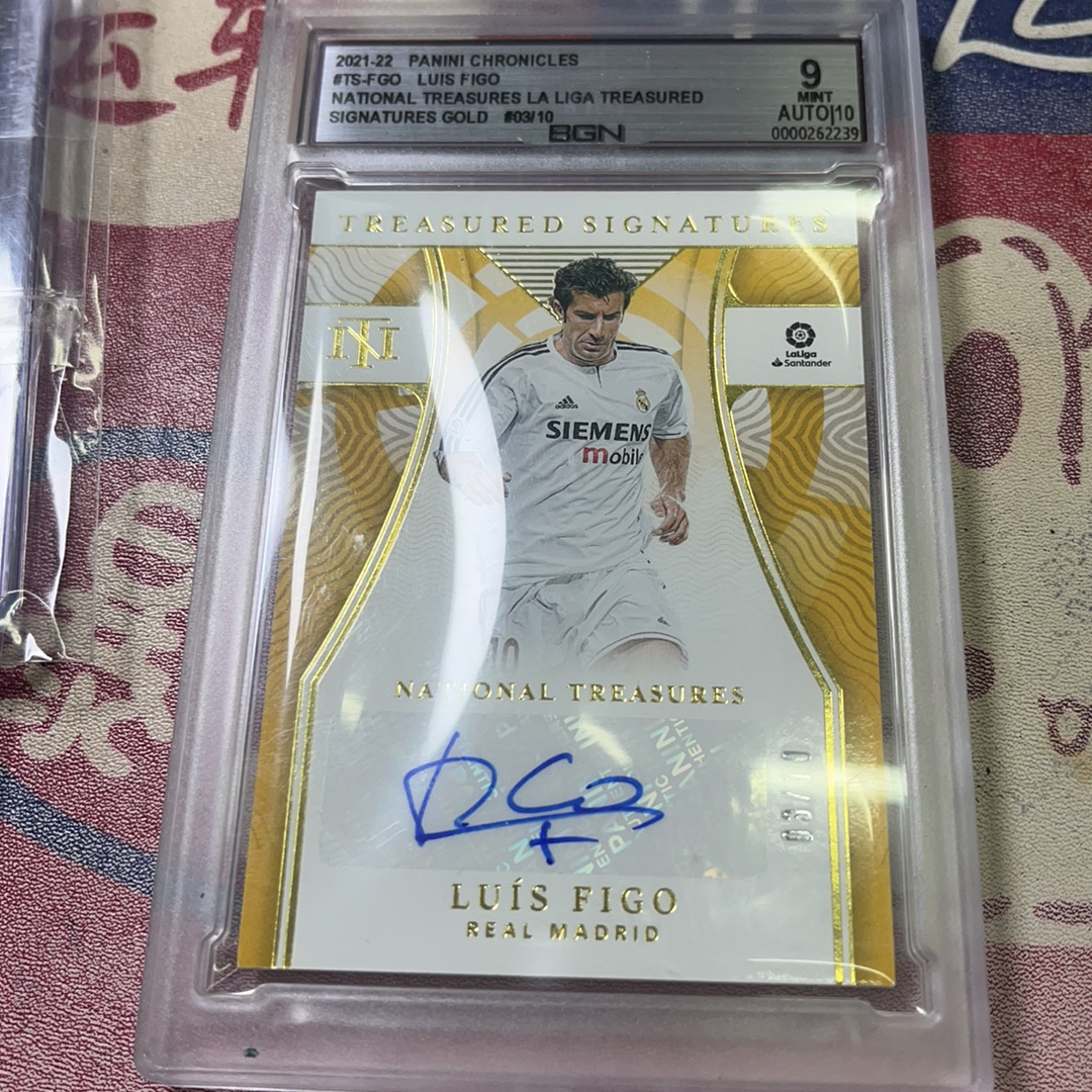 2021-22 Panini National Treasures luis Figo 国宝编年史 菲戈 完美签字 皇马传奇 限量3/10编 超低编 金折 葡萄牙 bgn高分9-10分 投资收藏必备