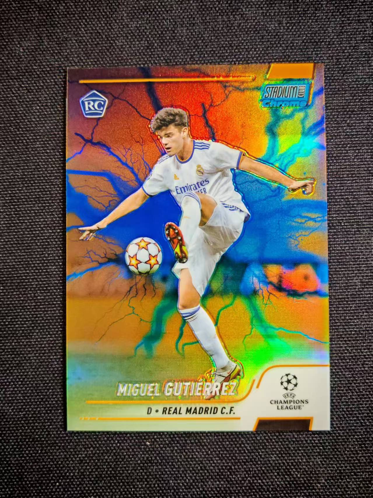 2021-22 Topps Chrome 欧冠 竞技场 Miguel Gutierrez 米格尔古铁雷斯 皇马 欧冠 RC 新秀 08/10编 橙蓝闪电折 低编 划痕 洛北拍卖 天天总6719P